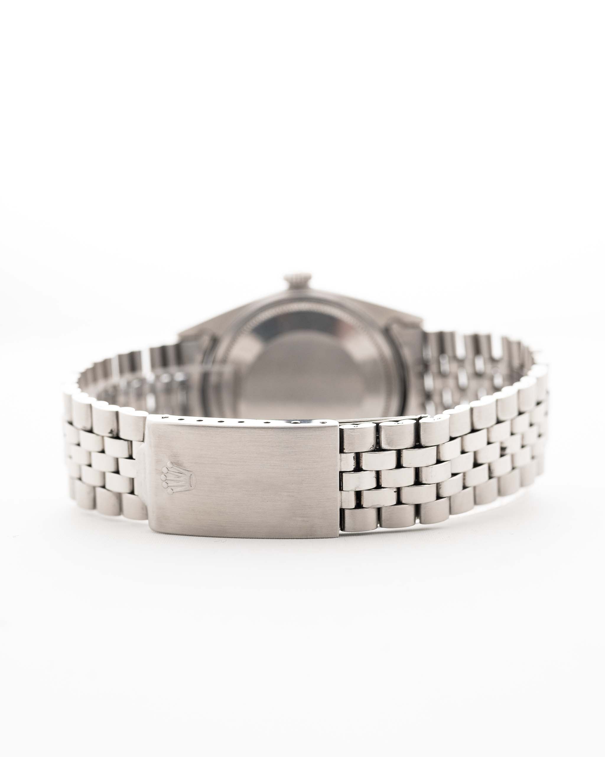 Emparejado con su brazalete Jubilee plegado original, este Datejust ofrece la combinación ideal de comodidad y presencia. En su interior late el legendario Calibre Rolex 1570, un movimiento automático con certificado de cronómetro conocido por su durabilidad y precisión, el mismo corazón que impulsó a los iconos profesionales de Rolex de la época.