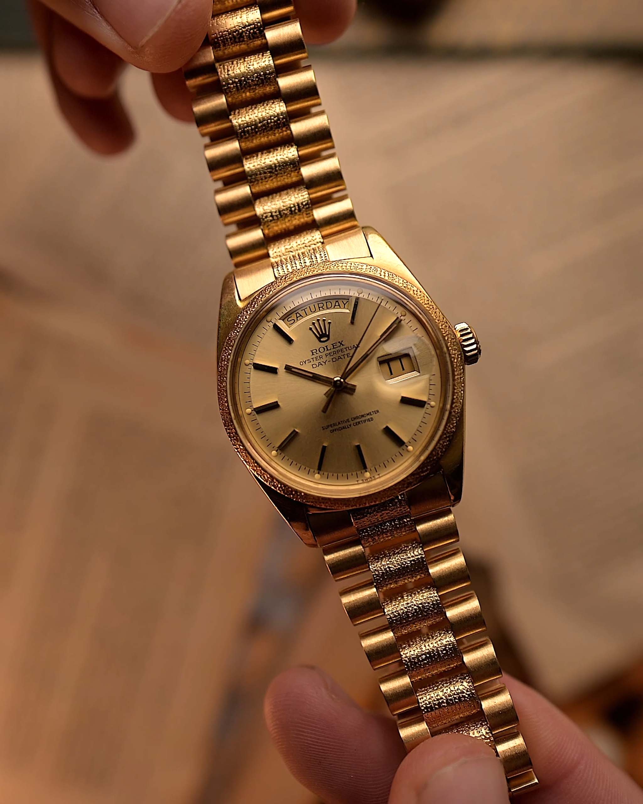 Un Day-Date para entendidos, donde la artesanía se une a la creatividad, y donde cada reflejo cuenta una historia de la época dorada de Rolex.