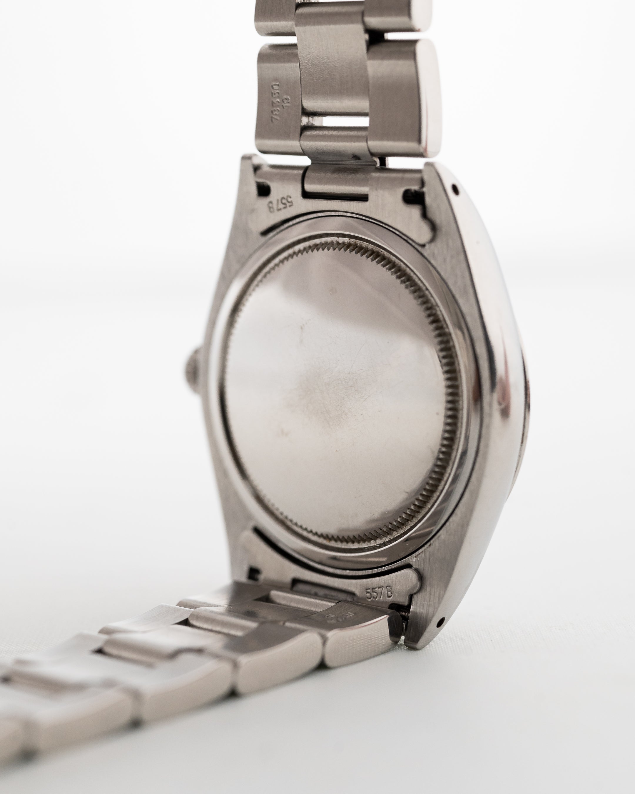 El Rolex Oysterdate Precision es una verdadera pieza "bajo el radar". Se presentó como el 6694 a principios de los 60 y se fabricó hasta finales de los 80. Y estéticamente, este Rolex es atemporal y precioso con 35 mm, pero se lleva más grande. Tiene un aspecto elegante y con clase que parece adecuado para la pista de tenis, una reunión de negocios o cualquier número de ambientes informales.