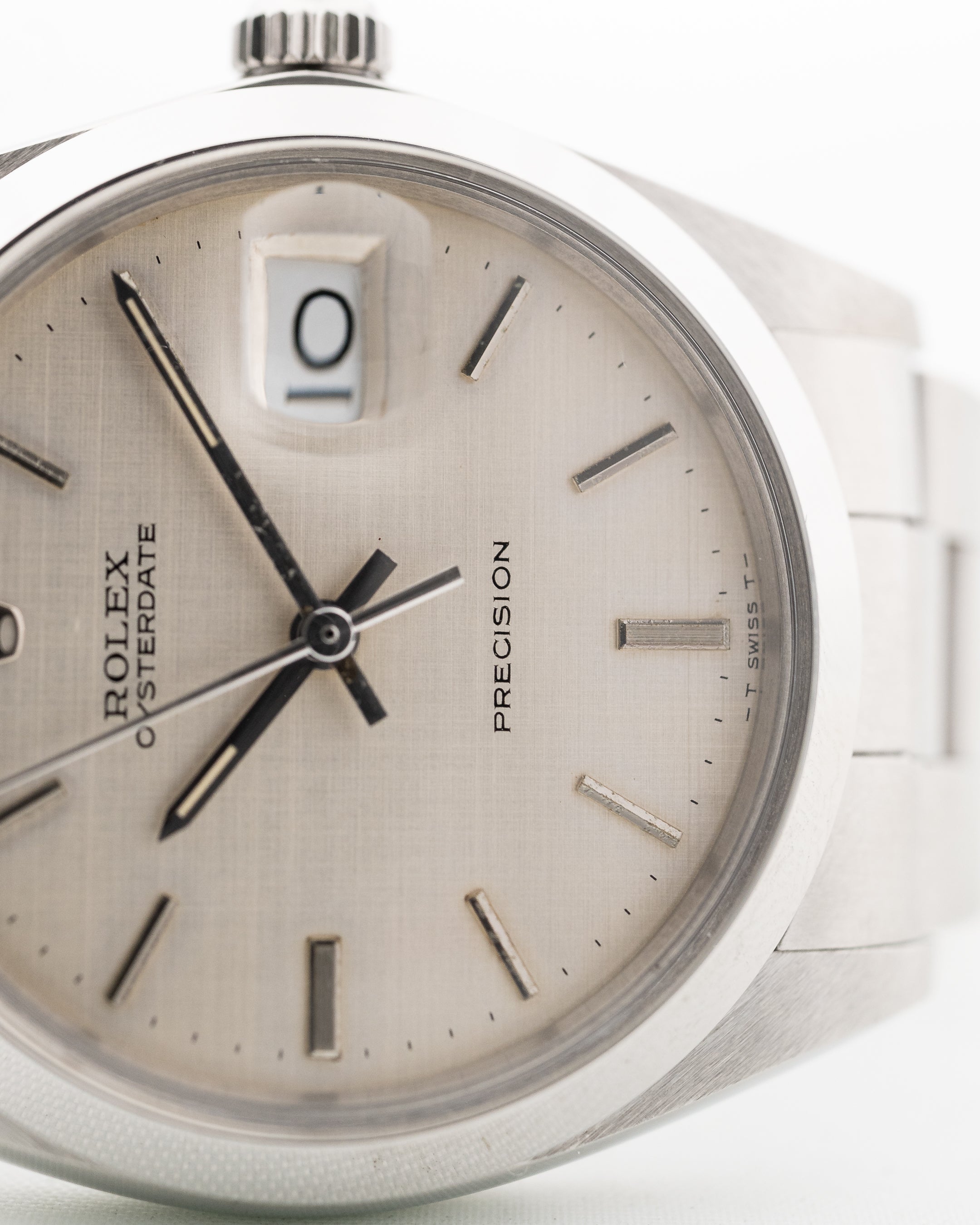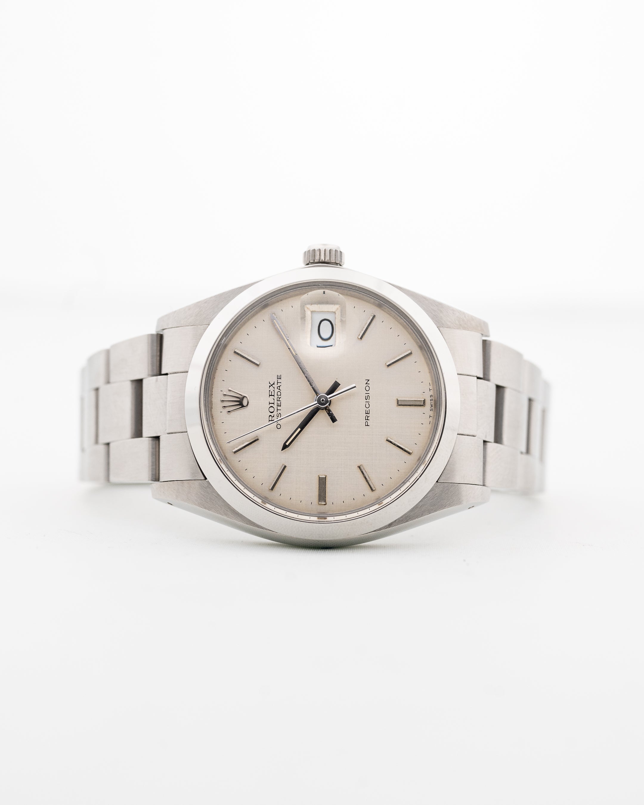 El Rolex Oysterdate Precision es una verdadera pieza "bajo el radar". Se presentó como el 6694 a principios de los 60 y se fabricó hasta finales de los 80. Y estéticamente, este Rolex es atemporal y precioso con 35 mm pero se lleva más grande. Tiene un aspecto elegante y con clase que parece adecuado para la pista de tenis, una reunión de negocios o cualquier número de ambientes informales.