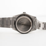 Esta pieza en particular de 1985 destaca por su impecable esfera de lino plateado y una caja fuerte con bordes afilados en Nos condition.