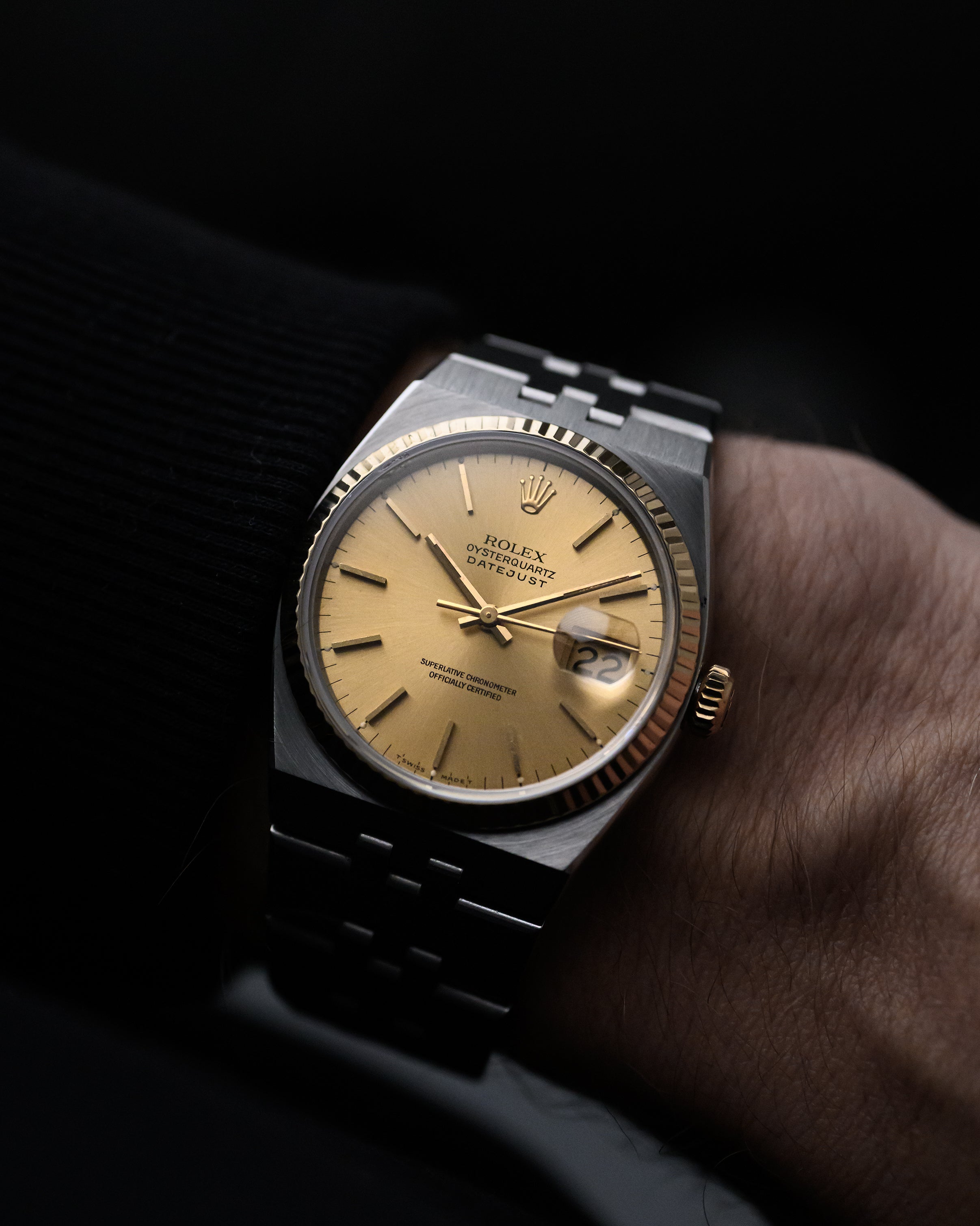 Rolex apostó fuerte por el Oysterquartz, desarrollando un movimiento de cuarzo que pudiera ser ajustado y mantenido por un relojero tradicional. Rolex tardó más de cinco años en crear un movimiento de cuarzo interno del que pudiera sentirse orgullosa, y en 1977 nació el Oysterquartz.