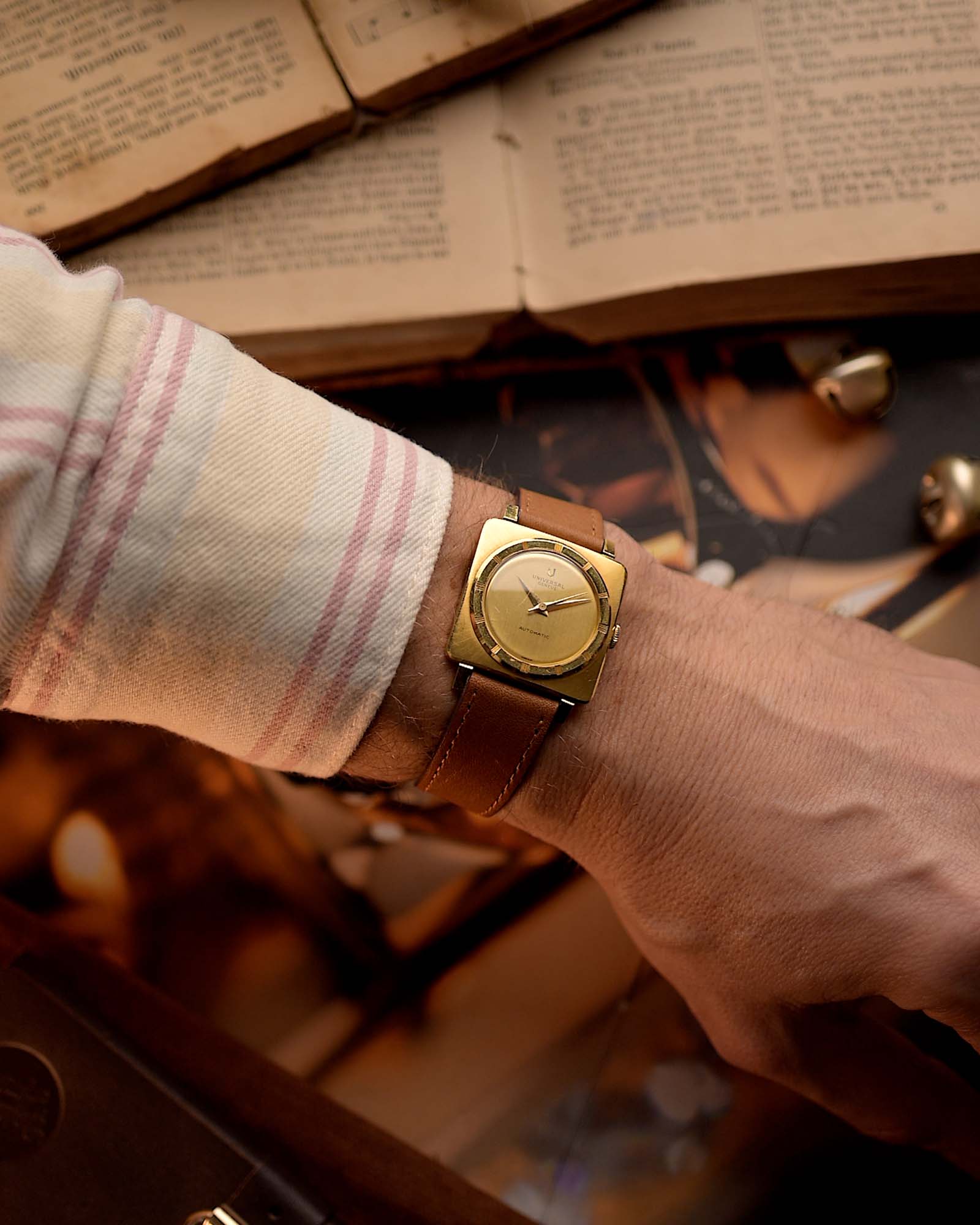 El apodo "Cioccolatone" -cuadrado de chocolateen italiano-se ha convertido en un término muy querido entre los coleccionistas para los relojes con cajas ricas y cuadradas y una presencia inconfundible en la muñeca. Producido durante sólo siete años, entre 1955 y 1962, este Ref. 135102/1 es una de las ejecuciones más raras, elaborada en oro amarillo de 18 quilates con detalles de la firma Universal Genève.