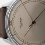 La década de 1940 fue una buena época para Universal Geneve, como ejemplifica este hermoso reloj de vestir. Este ejemplar no sólo es bonito, sino también sustancial.