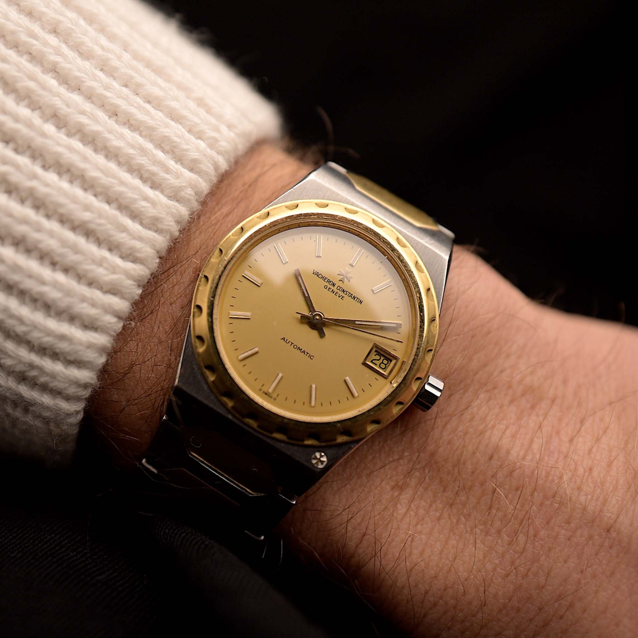 La versión que ve aquí es la versión bumper sin fecha en acero inoxidable con una impresionante esfera plateada/crema de líneas cruzadas y un anillo capitular de acero inoxidable espejado que juega con la luz de forma asombrosa. Las versiones con paragolpes son los Polerouter más tempranos que se pueden conseguir.