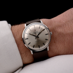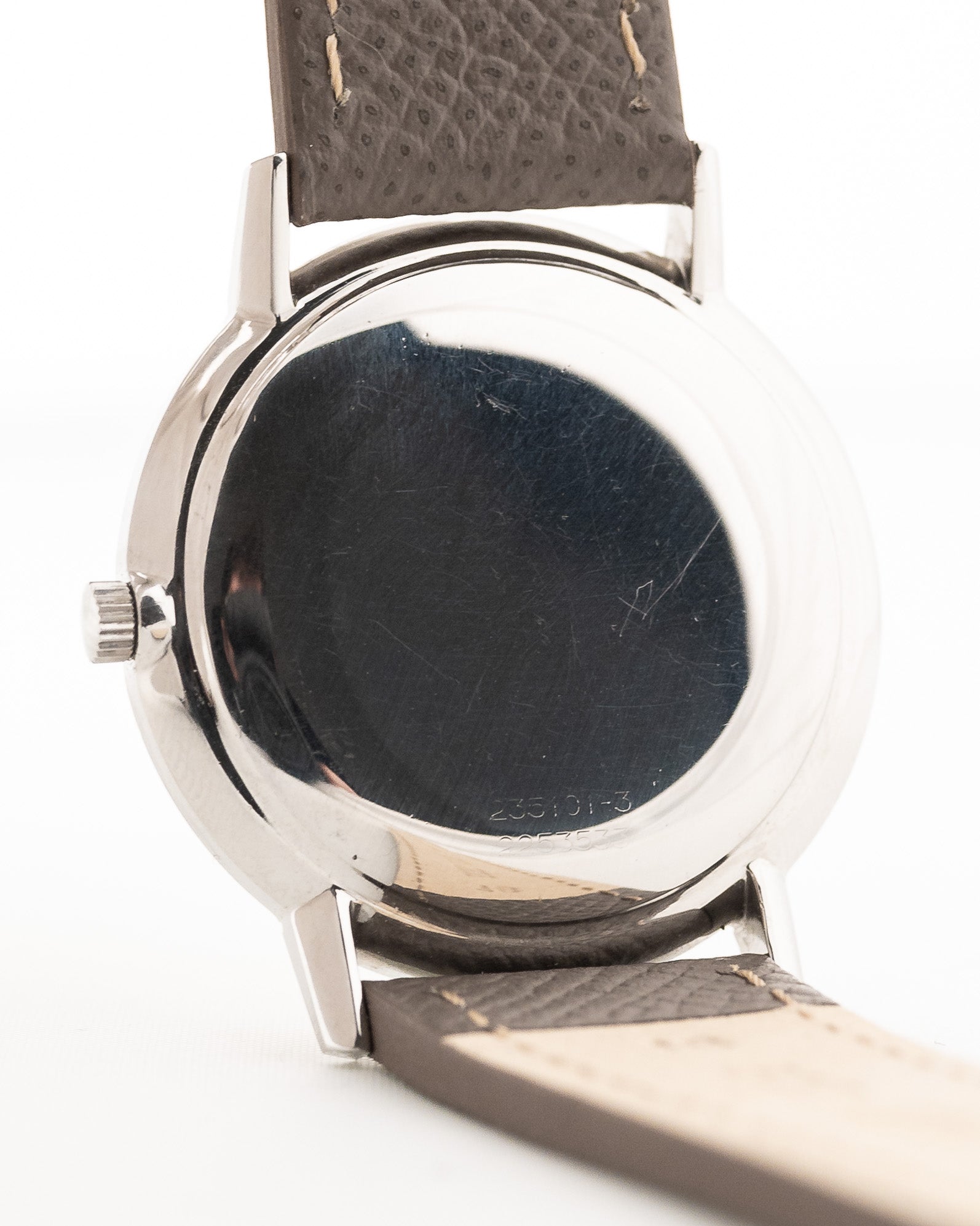 La versión que ve aquí es una de las más raras que se pueden encontrar: la "Compact". Está equipado con una impresionante esfera plateada con efecto sol en perfecto estado, marcadores horarios con incrustaciones de ónice y una ligera forma redondeada en el borde. En conjunto, se trata de un reloj de bello diseño con una rica historia aeronáutica.