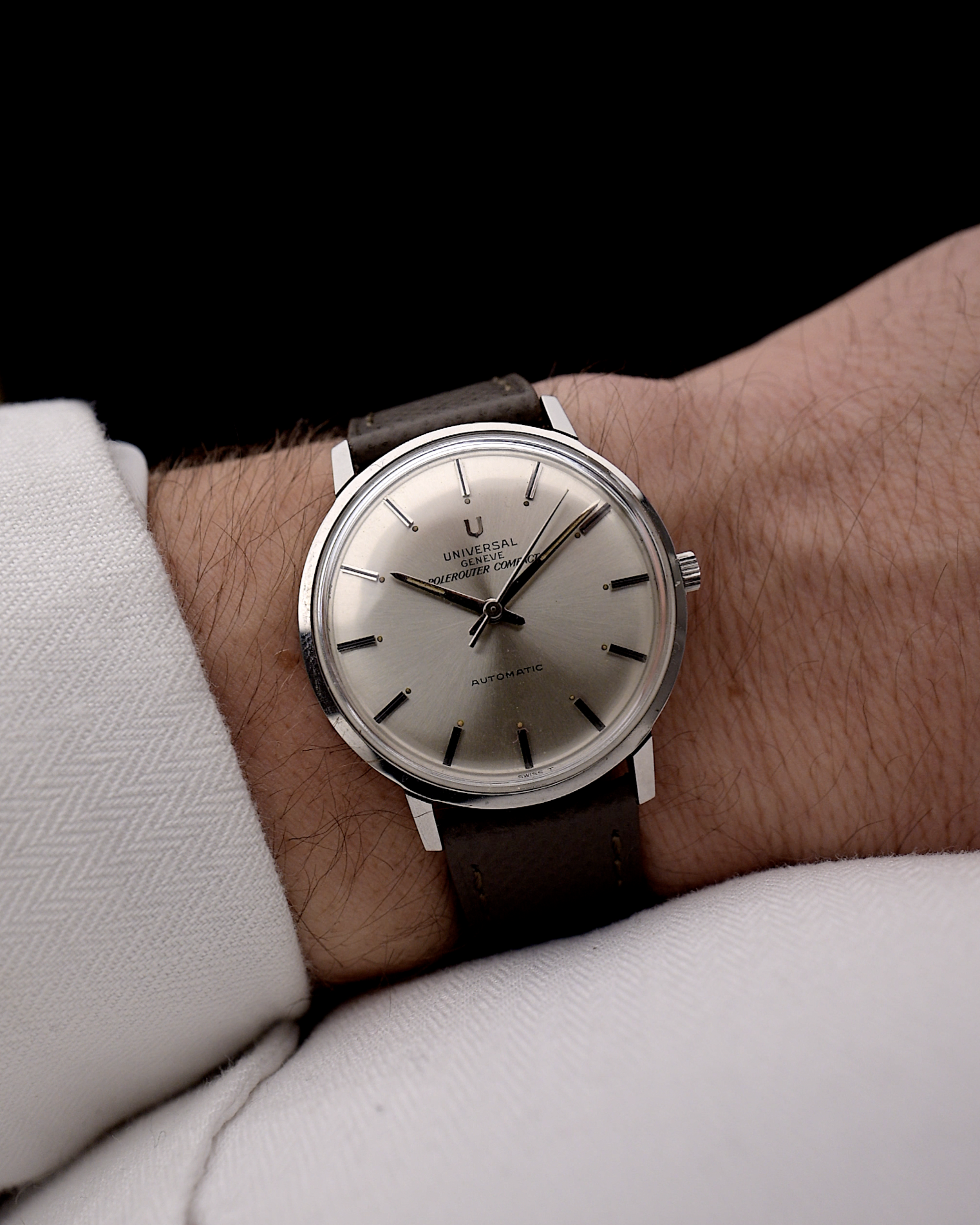 El Polerouter fue fabricado en 1954 por Universal Genève en colaboración con Scandinavian Airline System (SAS) por un Gerald Genta que entonces tenía 24 años. Universal Genève desarrolló el Polerouter automático para que fuera más resistente a los fuertes campos magnéticos de los polos norte y sur.