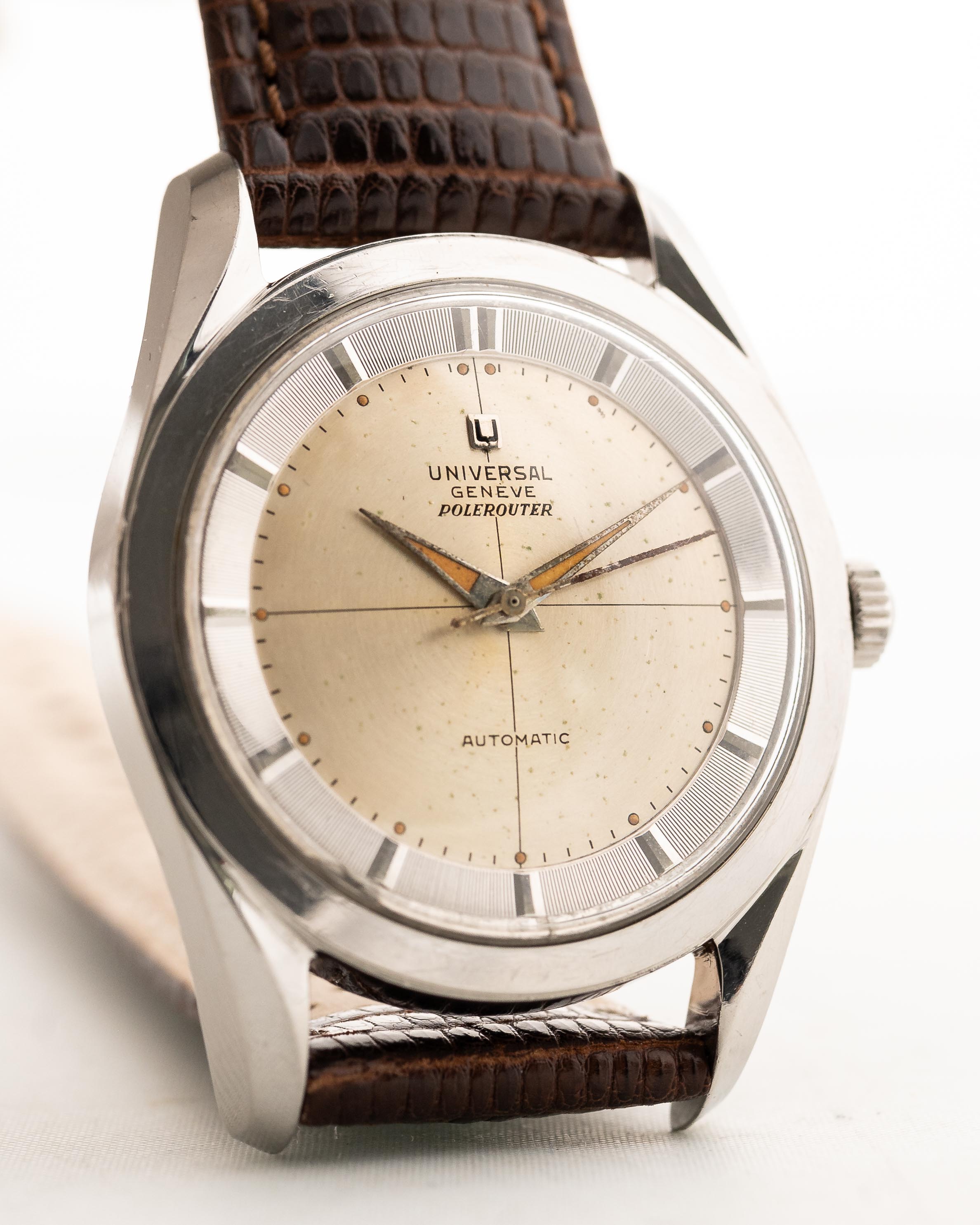 El Polerouter fue fabricado en 1954 por Universal Genève en colaboración con Scandinavian Airline System (SAS) por un Gerald Genta que entonces tenía 24 años. Universal Genève desarrolló el Polerouter automático para que fuera más resistente a los fuertes campos magnéticos de los polos norte y sur.