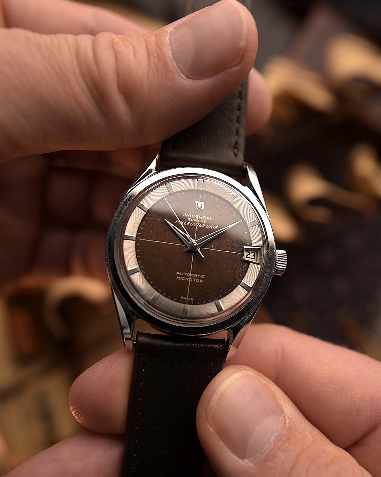 The case has been carefully polished to original Universal Genève factory specs, preserving its sharp, sculptural lines. Altogether, this is more than just a watch — it’s a design milestone from one of horology’s greatest minds, and a standout collector’s piece.