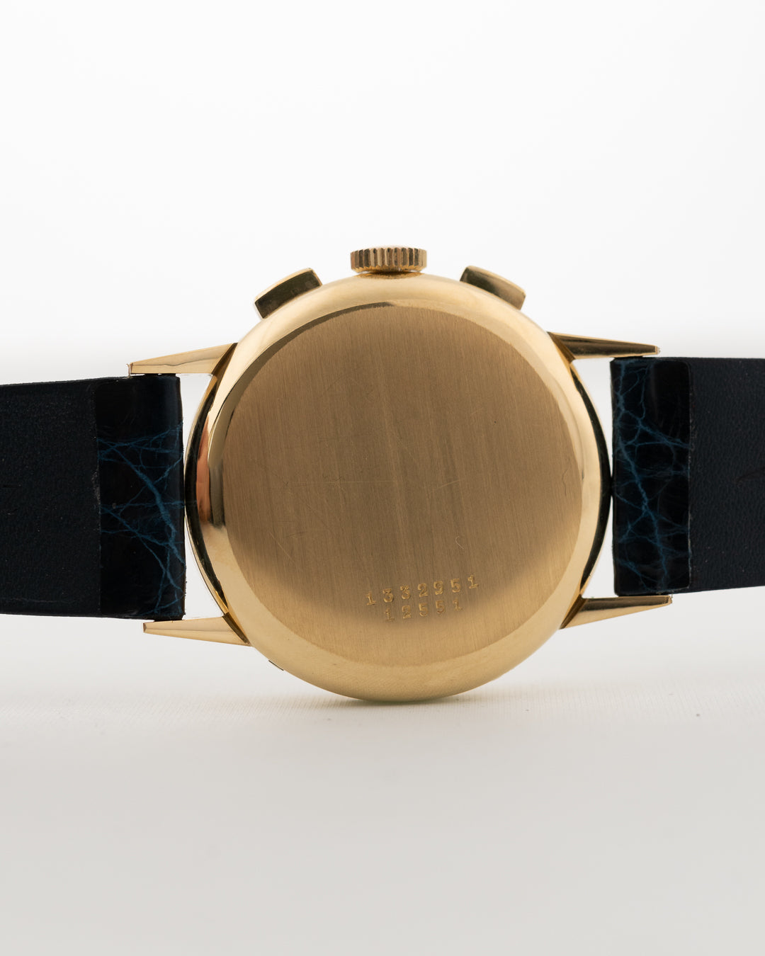 Presenta una enorme caja de 36 mm de oro amarillo de 18 quilates y es muy difícil encontrarlos en este estado original.