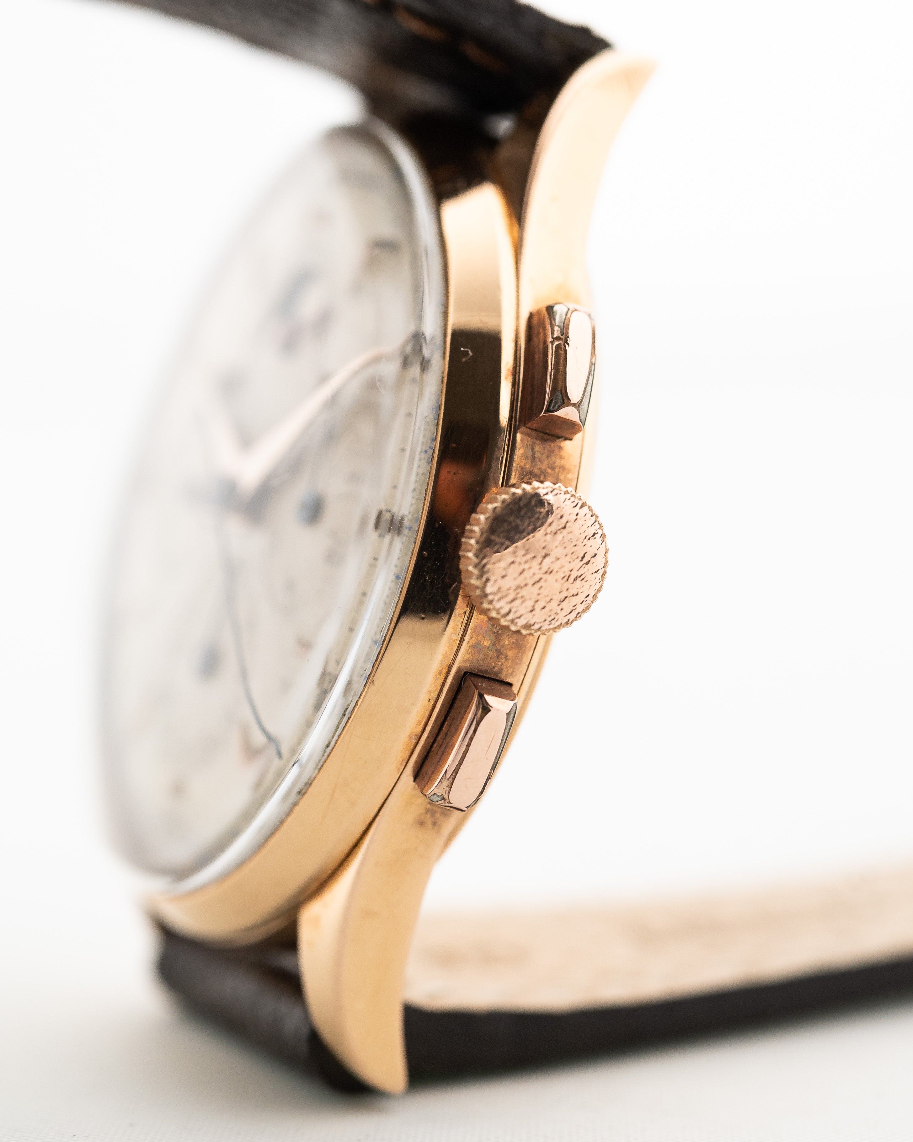 • la esfera tiene una pátina uniforme y ligeros arañazos en los marcadores horarios