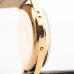 Presenta una caja Jumbo de 37,5 mm de oro rosa de 18 quilates y es muy difícil encontrarlos en este estado original con una caja Jumbo y en oro rosa.