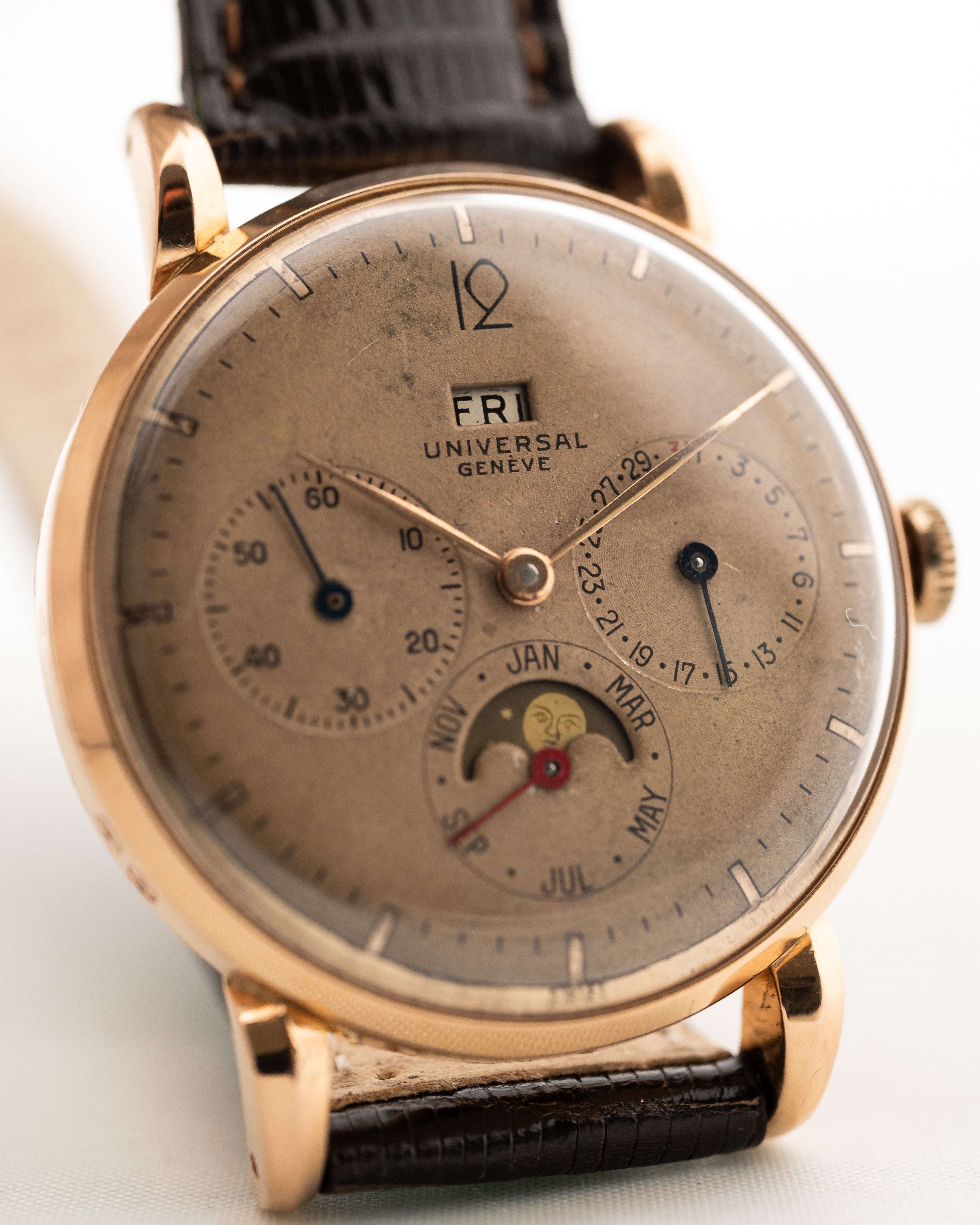 El Universal Geneve Triple Calendario es sencillamente uno de los relojes más deseados y más coleccionables del mercado vintage actual. Esta versión con la referencia 11305 de la década de 1940 no sólo es un gran ejemplo de este modelo, sino también una gran demostración de por qué el Triple Calendario es tan ávidamente buscado.