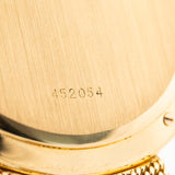 El brazalete integrado de oro amarillo de 18 quilates con su diseño de filigrana hace que este Vacheron Constantin sea único. La esfera de color dorado/crema, el bisel limpio, las agujas de bastón y los índices con incrustaciones de ónice mantienen el aspecto limpio y elegante.