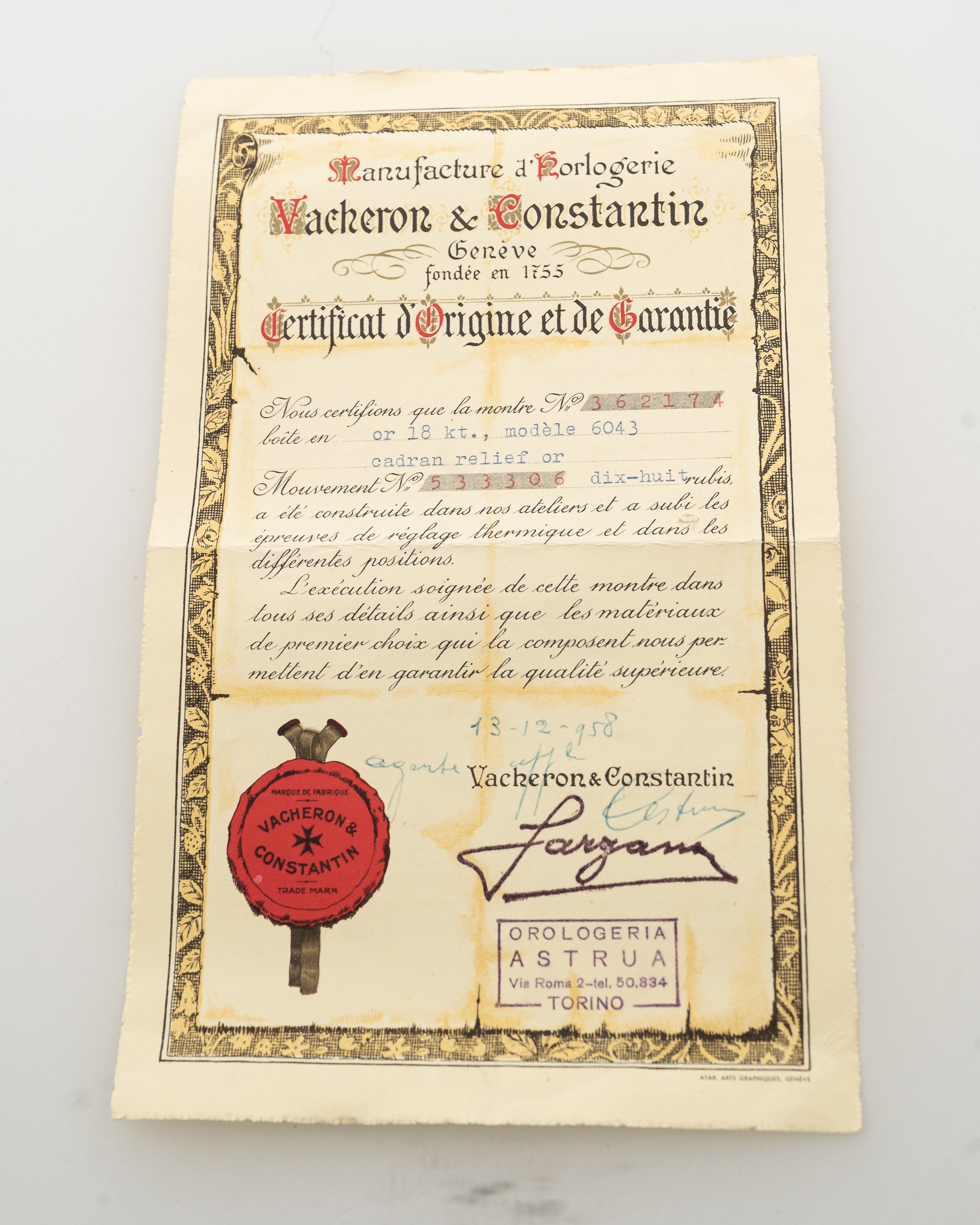 Esta pieza en particular destaca por su bello estado de conservación y una sólida caja de oro rosa de 18 quilates y se entrega con el certificado original y los papeles de garantía.