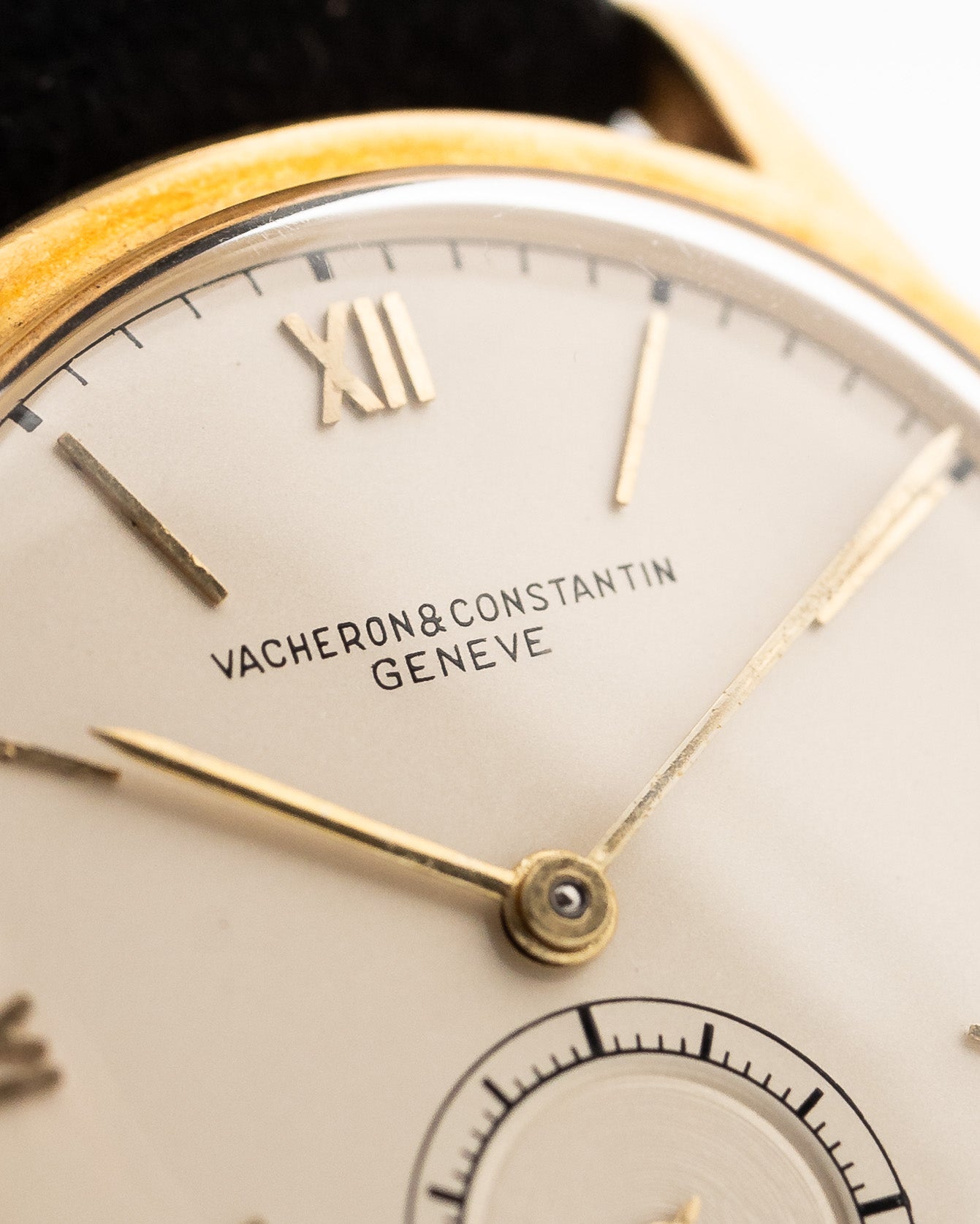 Aquí tenemos un reloj de vestir Vacheron Constantin de la década de 1940 bellamente acabado, con asas torneadas hacia abajo y una esfera de diseño asombroso con tantos detalles que es difícil mencionarlos todos.