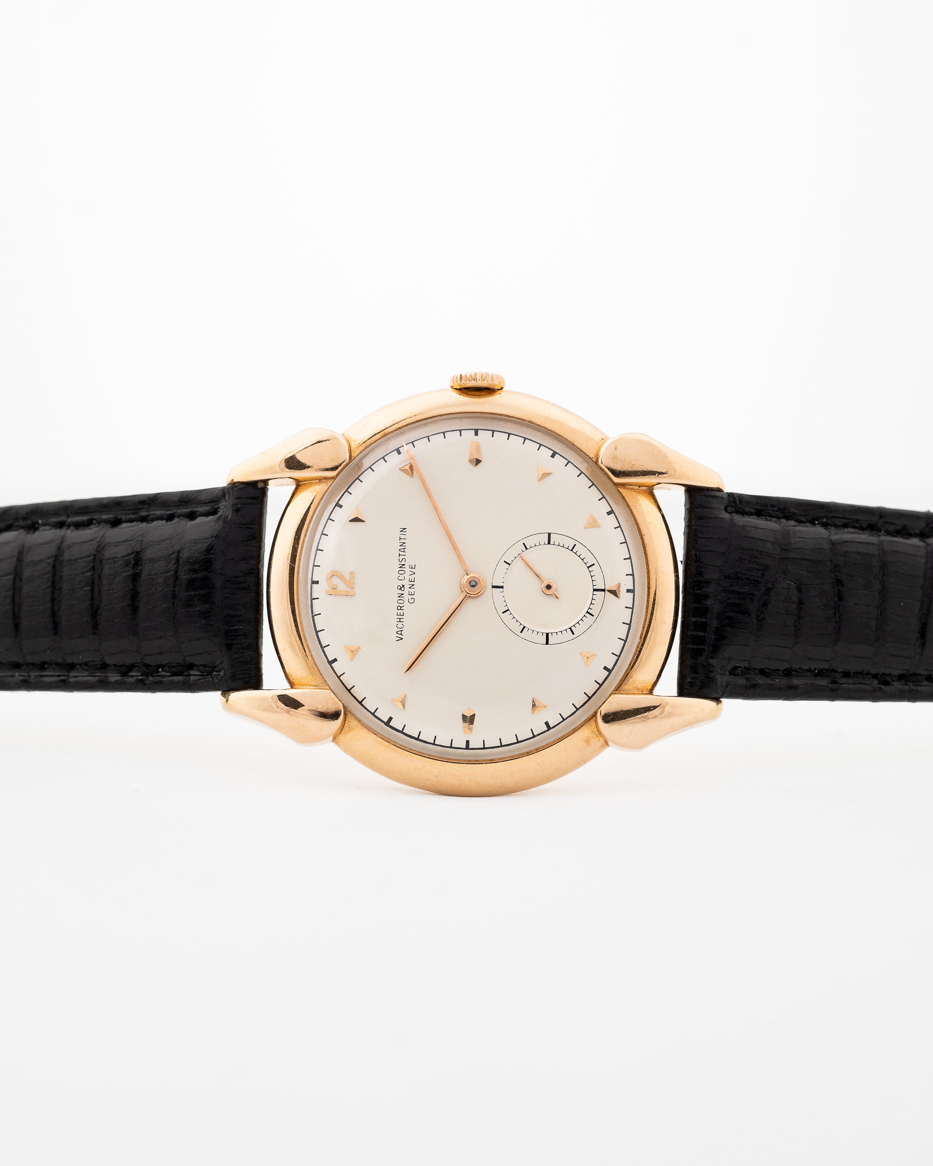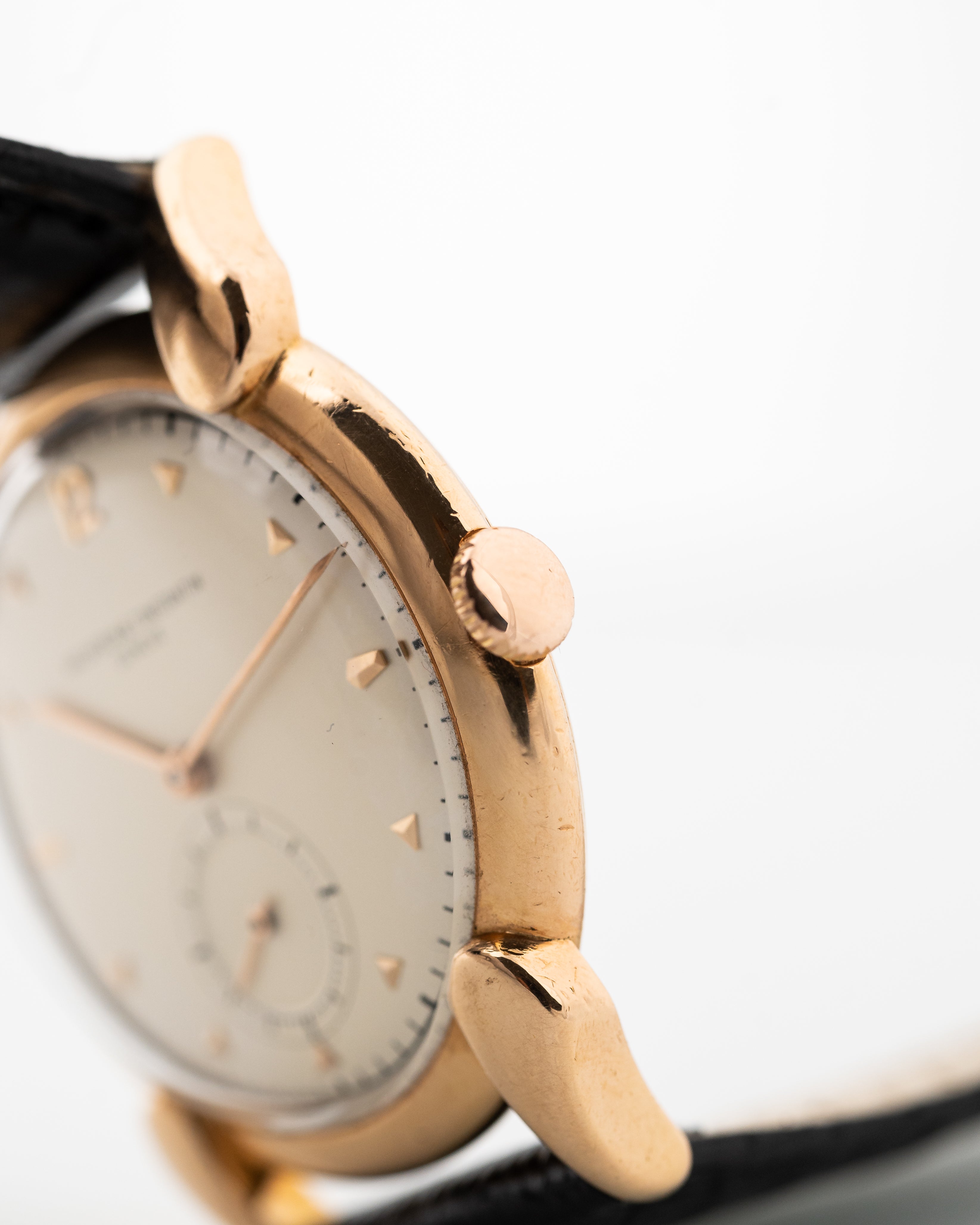 Aquí tenemos un rarísimo reloj de vestir Vacheron Constantin Jumbo de la década de 1940 con un acabado precioso, asas de fantasía únicas y una esfera de diseño asombroso con tantos detalles que es difícil mencionarlos todos.