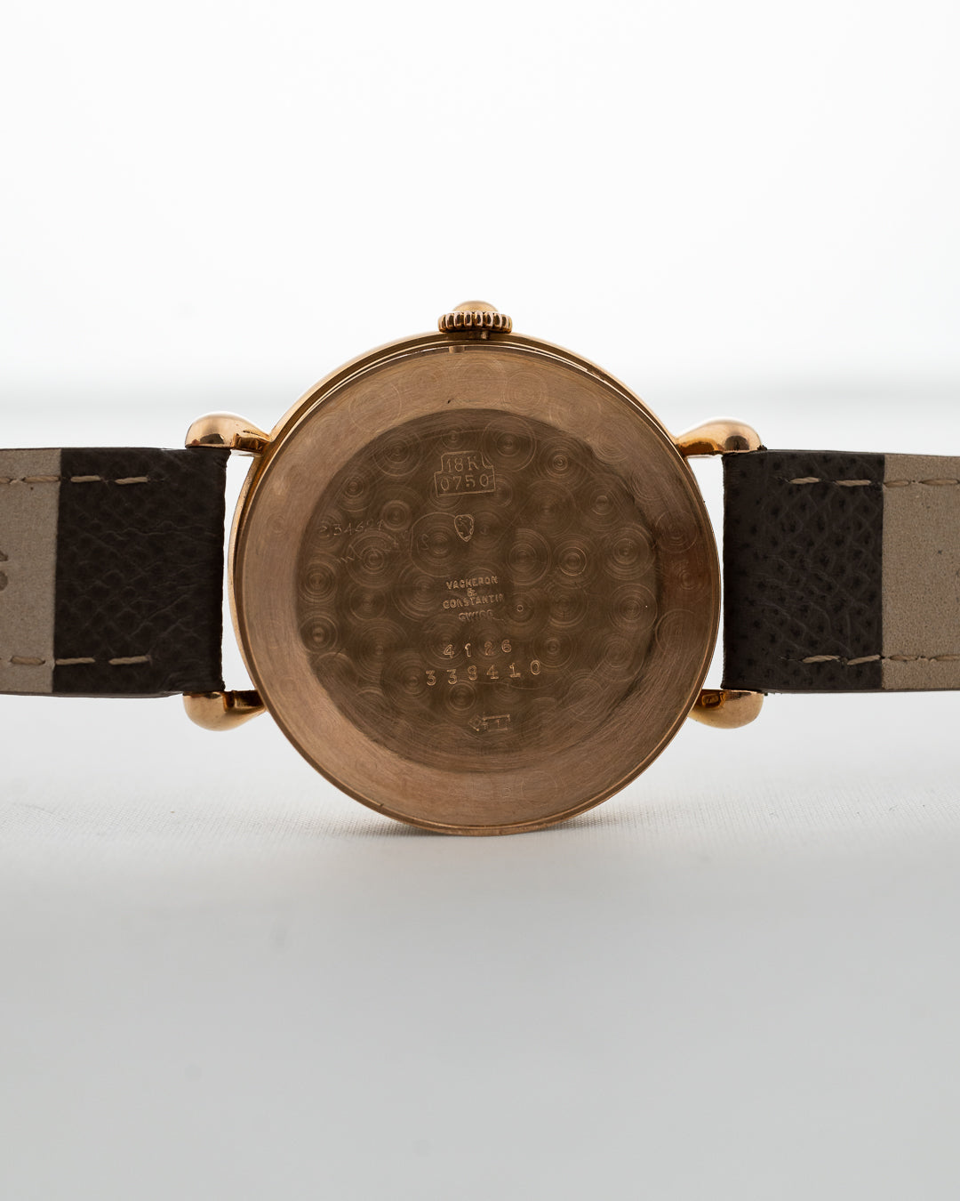 Esta pieza en particular destaca por su bello estado de conservación y una robusta caja de oro rosa de 18 quilates.