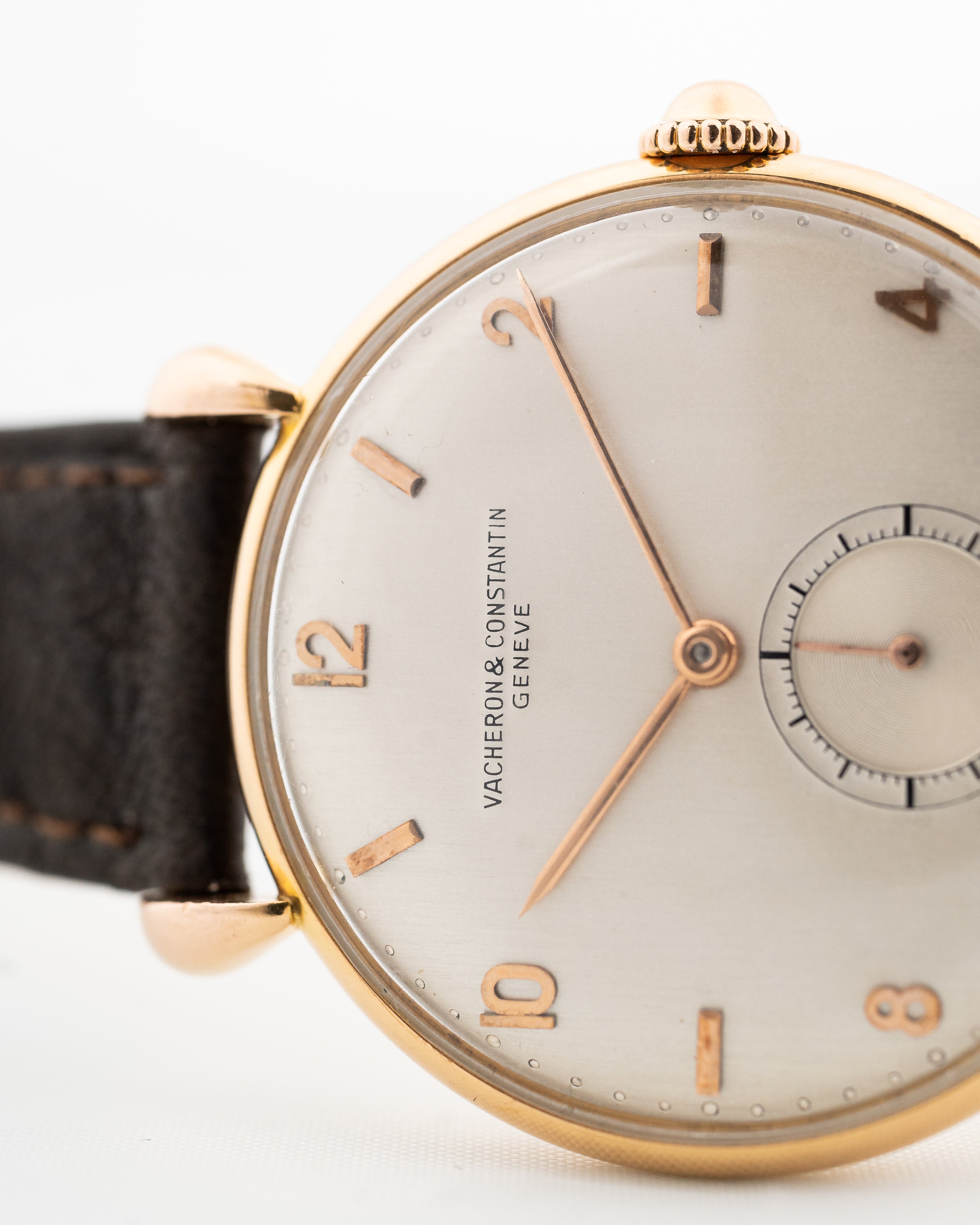 Aquí tenemos un reloj de vestir Vacheron Constantin de 1948 bellamente acabado, con unas asas en forma de lágrima únicas y una esfera asombrosamente diseñada con tantos detalles que es difícil mencionarlos todos.