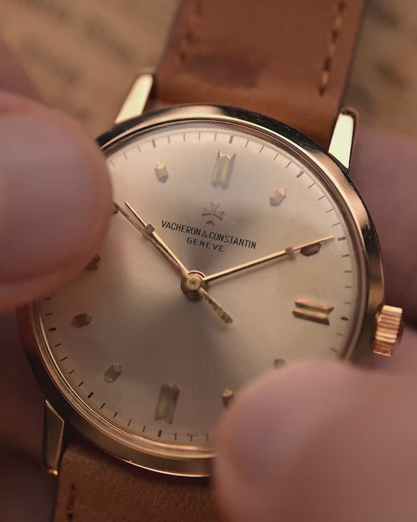 En caja de oro rosa de 18 quilates, su silueta de 34 mm logra un equilibrio ideal entre presencia y discreción. La esfera plateada motivo sol, intacta y elegantemente envejecida, se complementa armoniosamente con los índices bastón de oro rosa, las agujas dauphine y la Cruz de Malta aplicada de Vacheron, todo lo cual contribuye a su estética cálida y monocromática.