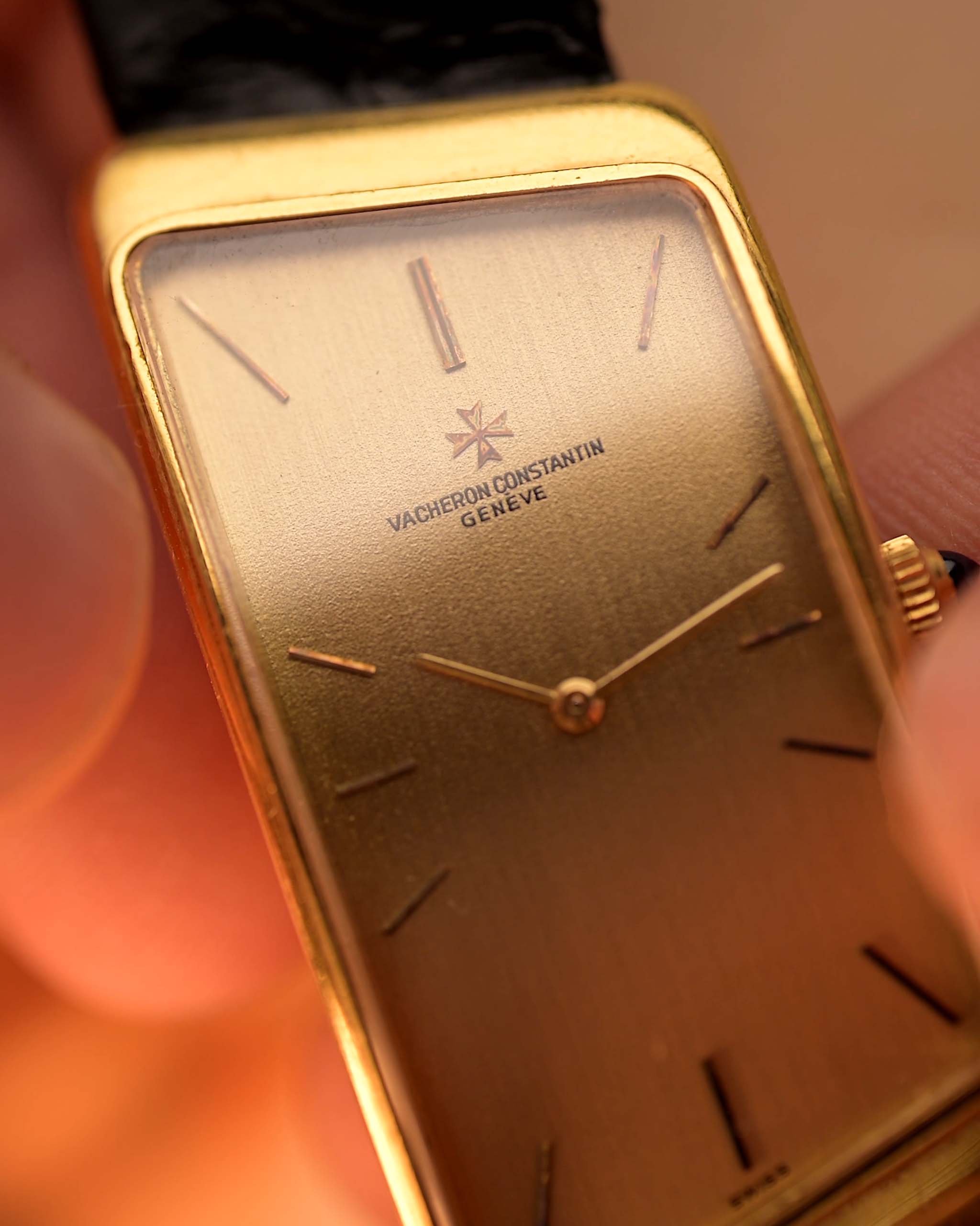 The golden dial with applied gold indexes offers a calm and harmonious appearance, complemented by a finely matched original VC leather strap that enhances its understated charm.
