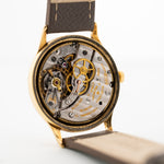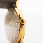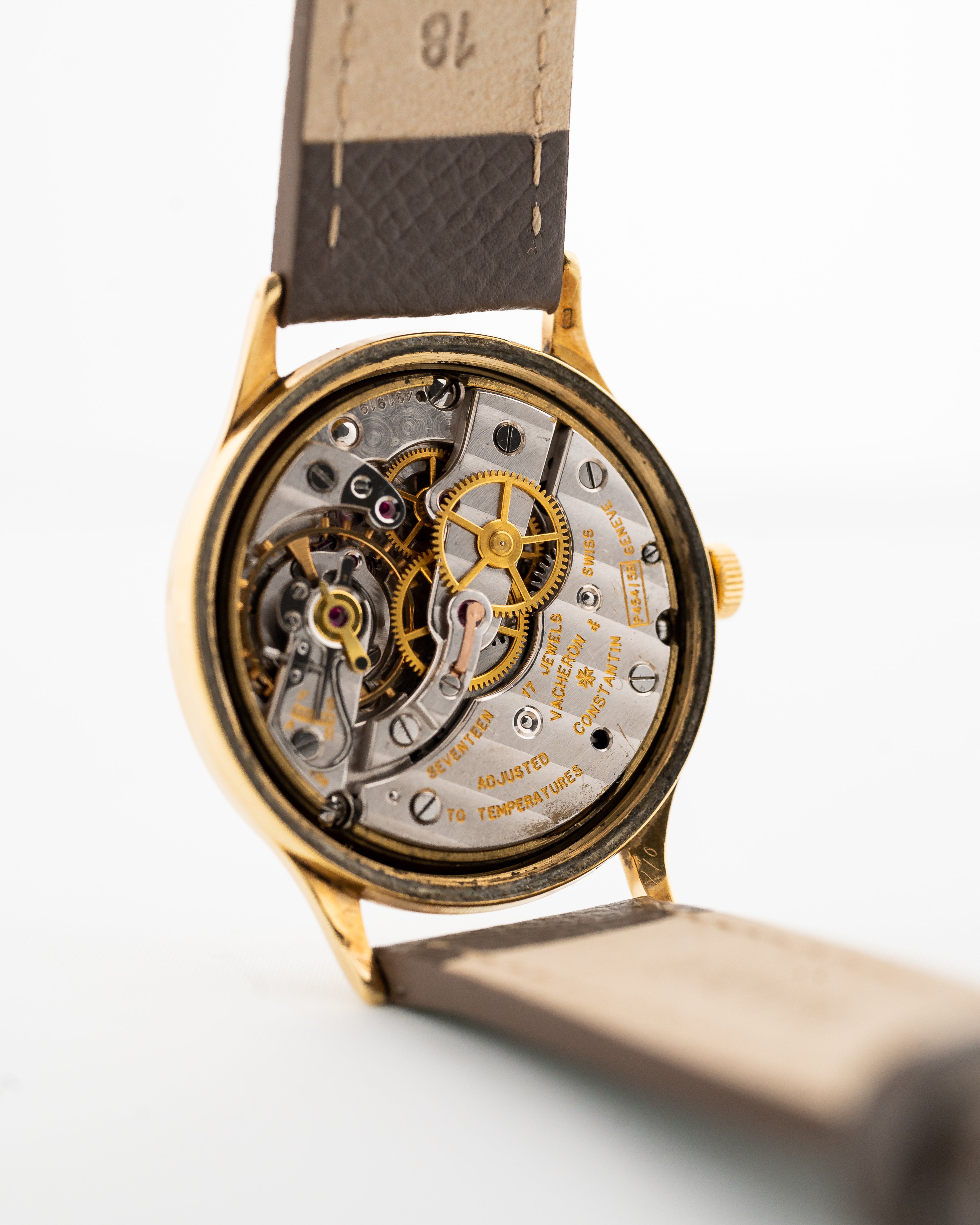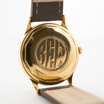 Aquí tenemos un bello ejemplo de un Vacheron Constantin de oro amarillo de 35 mm de la década de 1950. Esta pieza tiene una esfera blanca/plateada con marcadores horarios de oro aplicados y agujas de oro y un precioso minutero. La atención al detalle de los marcadores horarios y la elegancia de la limpia esfera rara vez se ven tan bien hechas. Se trata de un ejemplo clásico de reloj de vestir VC con indicación sencilla de horas, minutos y segundos y caja Spillmann de 18 quilates.