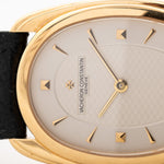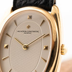 Nuestro ejemplar de 1996 está bellamente acabado en una caja de oro amarillo de 18 quilates y destaca por su esfera sigma blanca/plata de 18 quilates, el logotipo de Vacheron aplicado y una fantástica estructura de lino en el centro de la esfera.