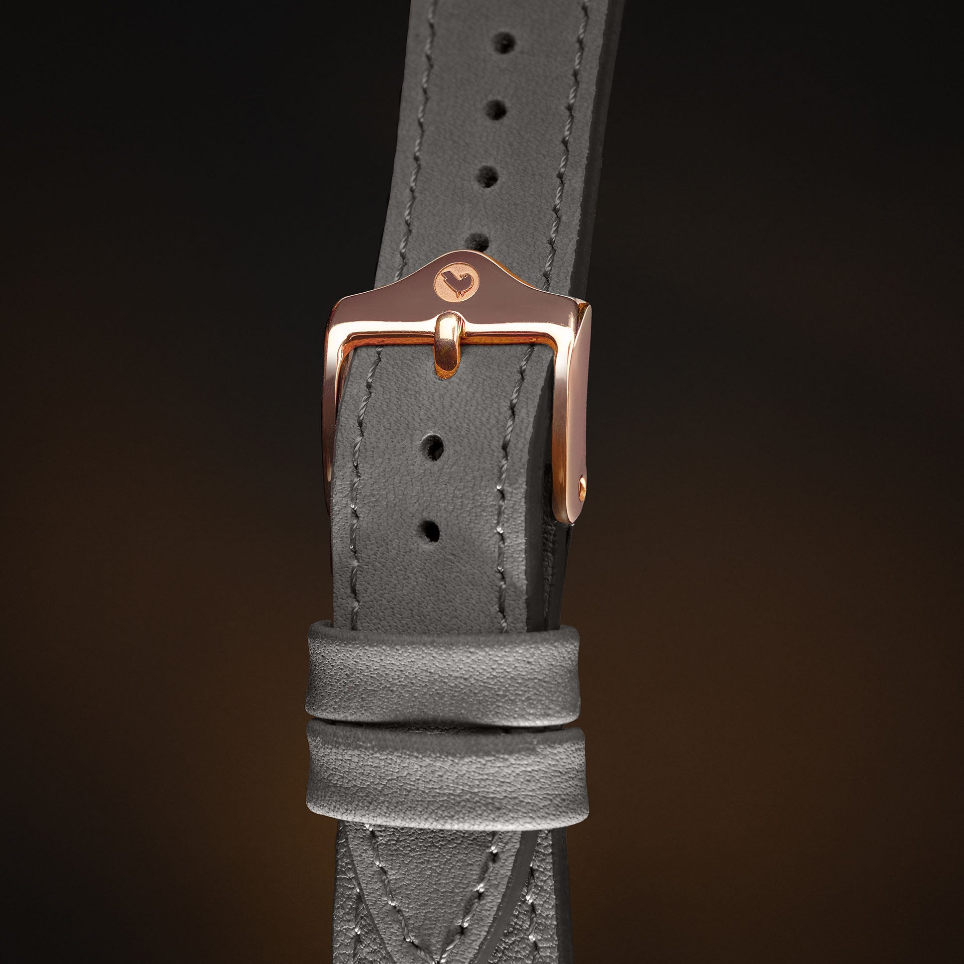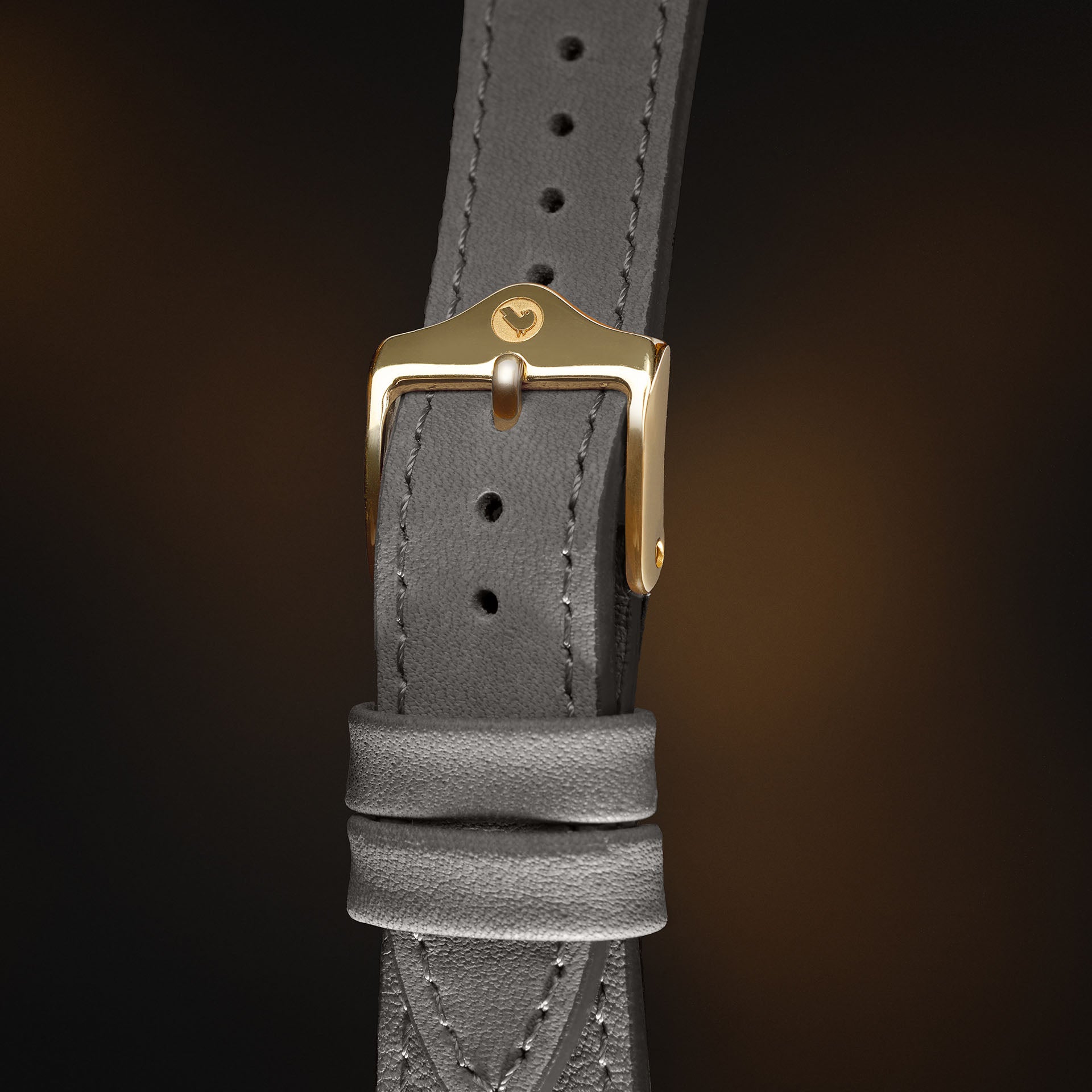 Fabriquée à la main avec finesse, la boucle incurvée de 14 mm en acier inoxydable est disponible en or, en or rose et en acier. Inspirée par l'esthétique raffinée des garde-temps classiques, la boucle en acier inoxydable finement gravée est disponible en or, en or rose et en acier. GOLDAMMER reflète notre souci du détail.