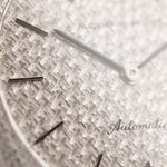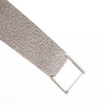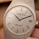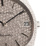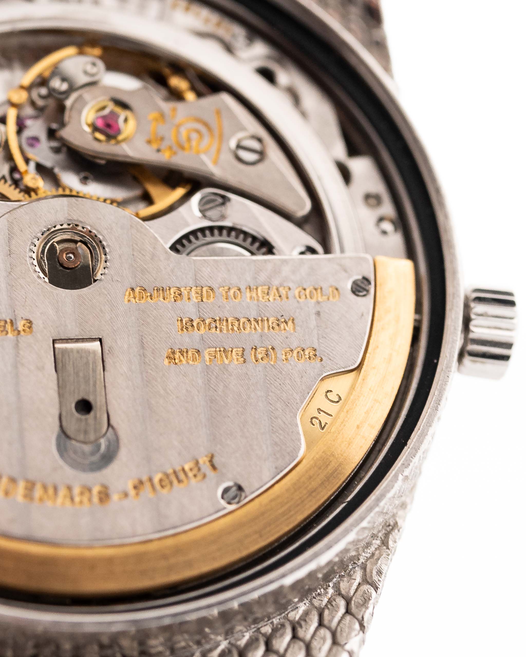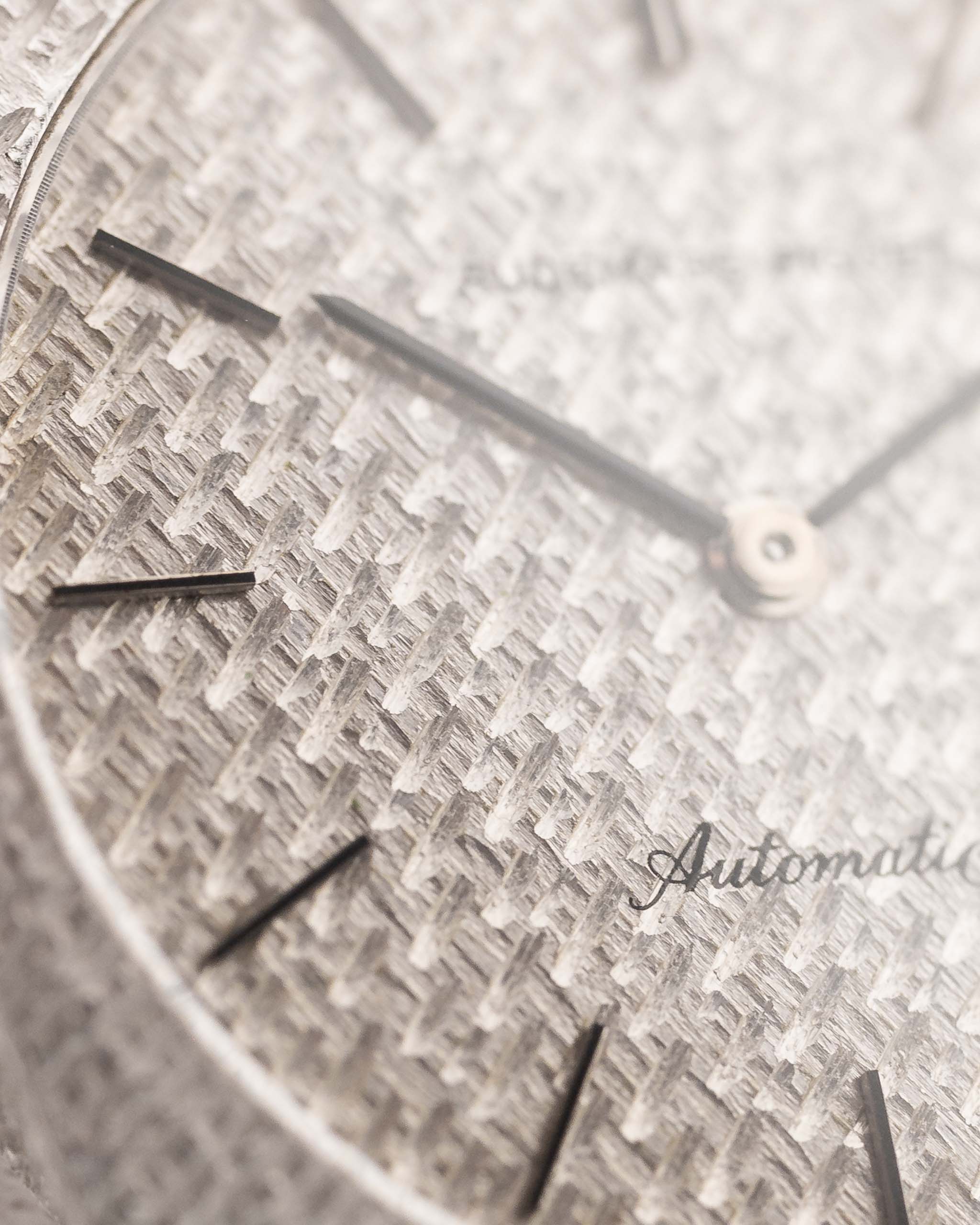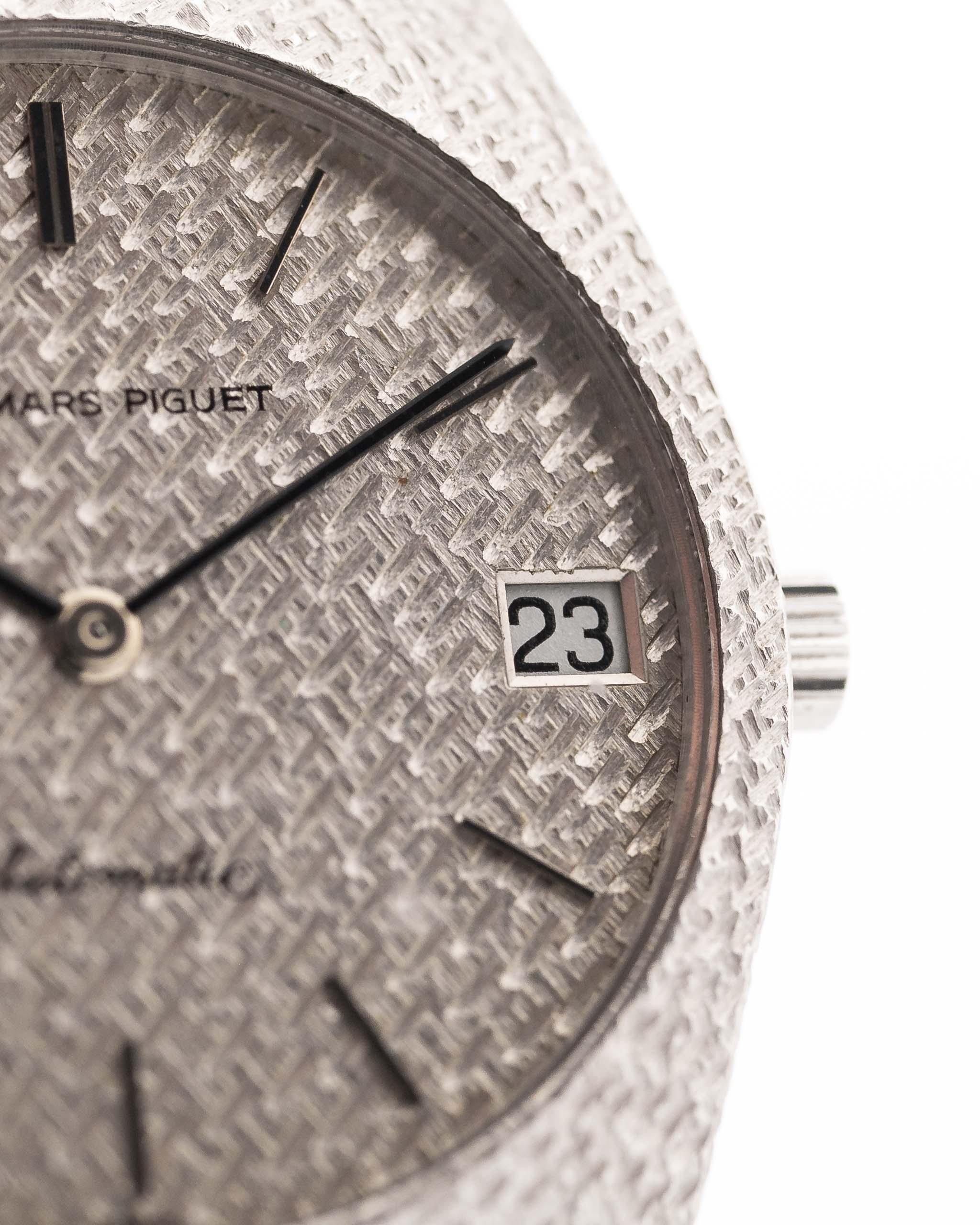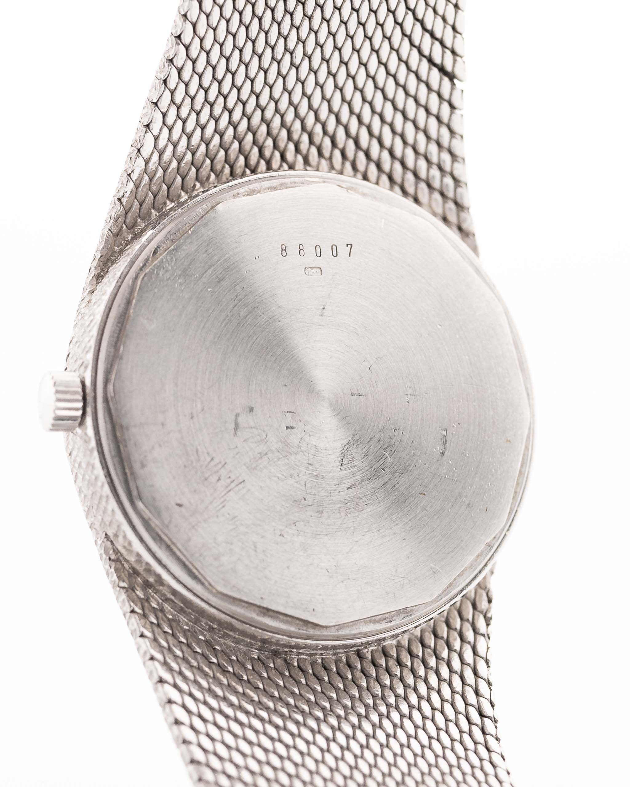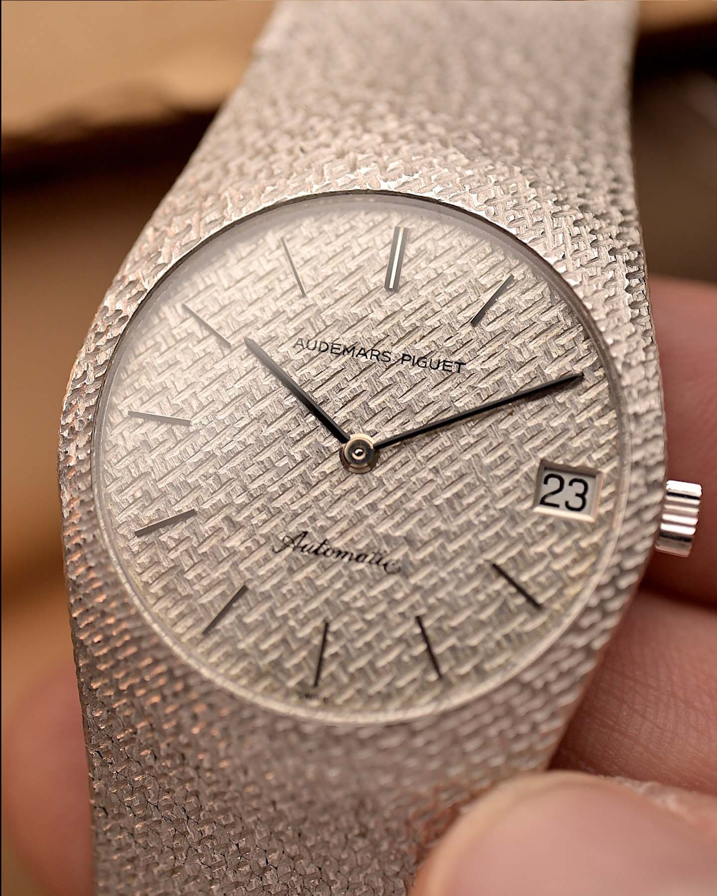 Mince, rare et indéniablement raffinée, cette montre habillée Audemars Piguet des années 1970 allie un design pur à une technique de mouvement révolutionnaire. Réalisée en or blanc 18 carats avec un bracelet intégré, elle incarne le luxe discret dans toute sa splendeur.