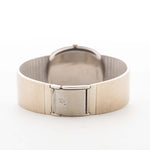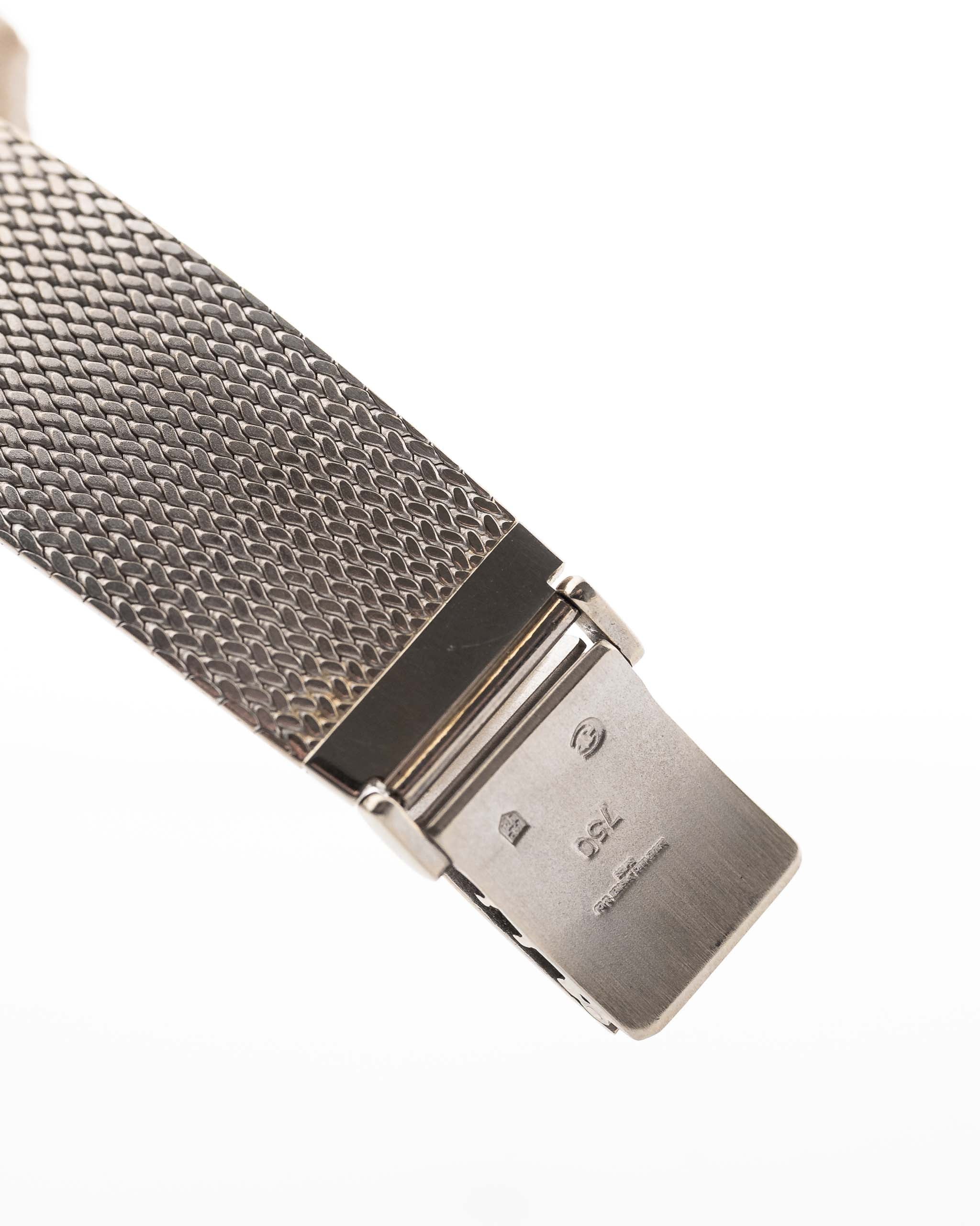 Le boîtier en or blanc 18 carats, d'un diamètre de 31 mm, est en bon état et s'accompagne d'un bracelet unique en or blanc 18 carats aux finitions soignées. Le calibre 2120 ultrafin, associé au bracelet en or blanc massif, fait de ce garde-temps une véritable seconde peau.