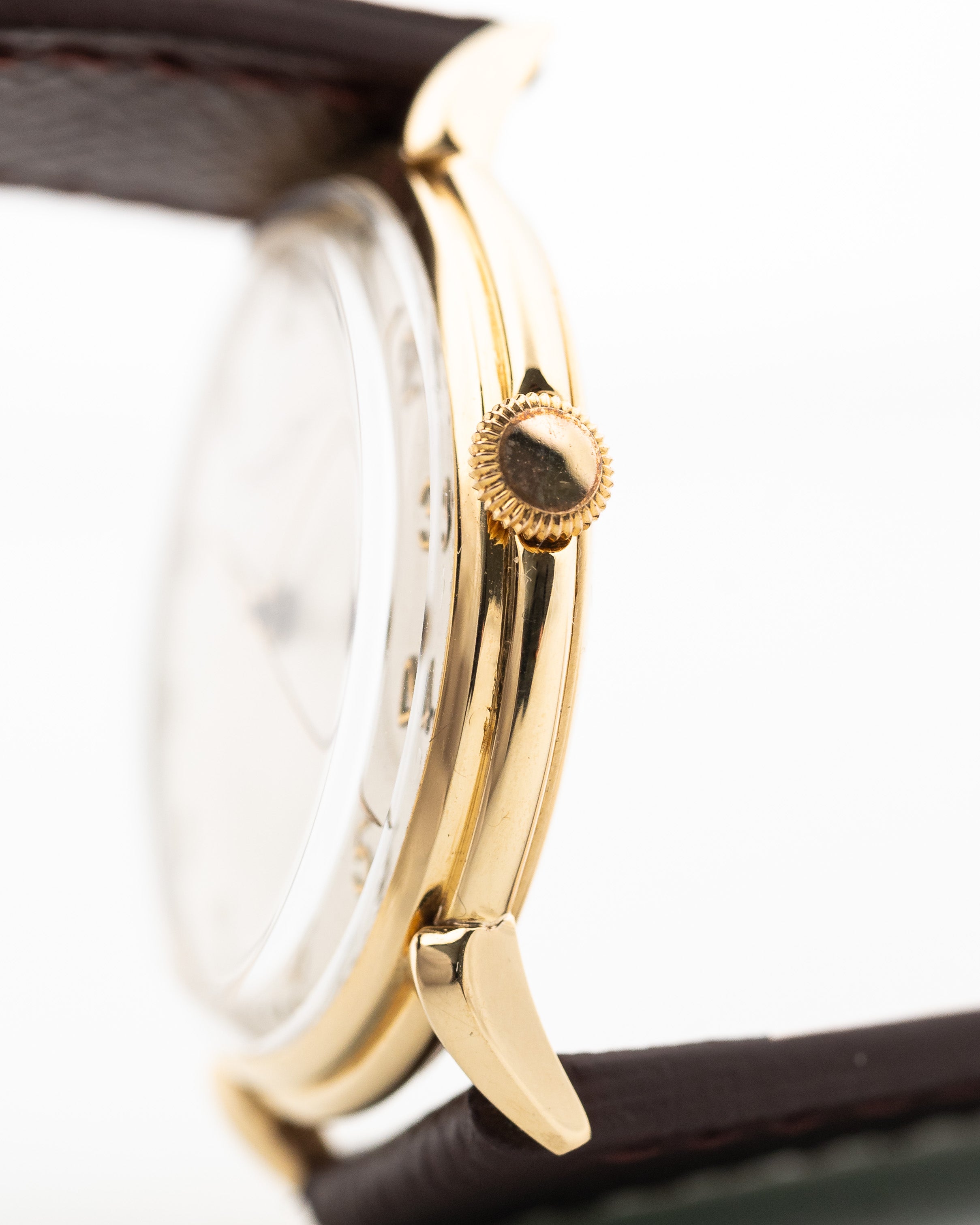 IWC a produit une très grande variété de montres-bracelets depuis le début, allant des montres habillées aux montres d'aviation. Cet exemple, en or jaune 18 carats, de style Calatrava avec des cornes araignées, resterait une constante dans les collections de chacun, d'autant plus qu'il est présenté dans un modèle exceptionnel de 1945.