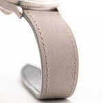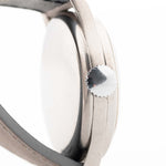 Son charme est complété par une trotteuse centrale rouge classique et un bracelet en cuir gris mat qui rehausse l'aspect vintage. Un must pour les collectionneurs qui apprécient le design d'avant-guerre avec une présence moderne au poignet.
