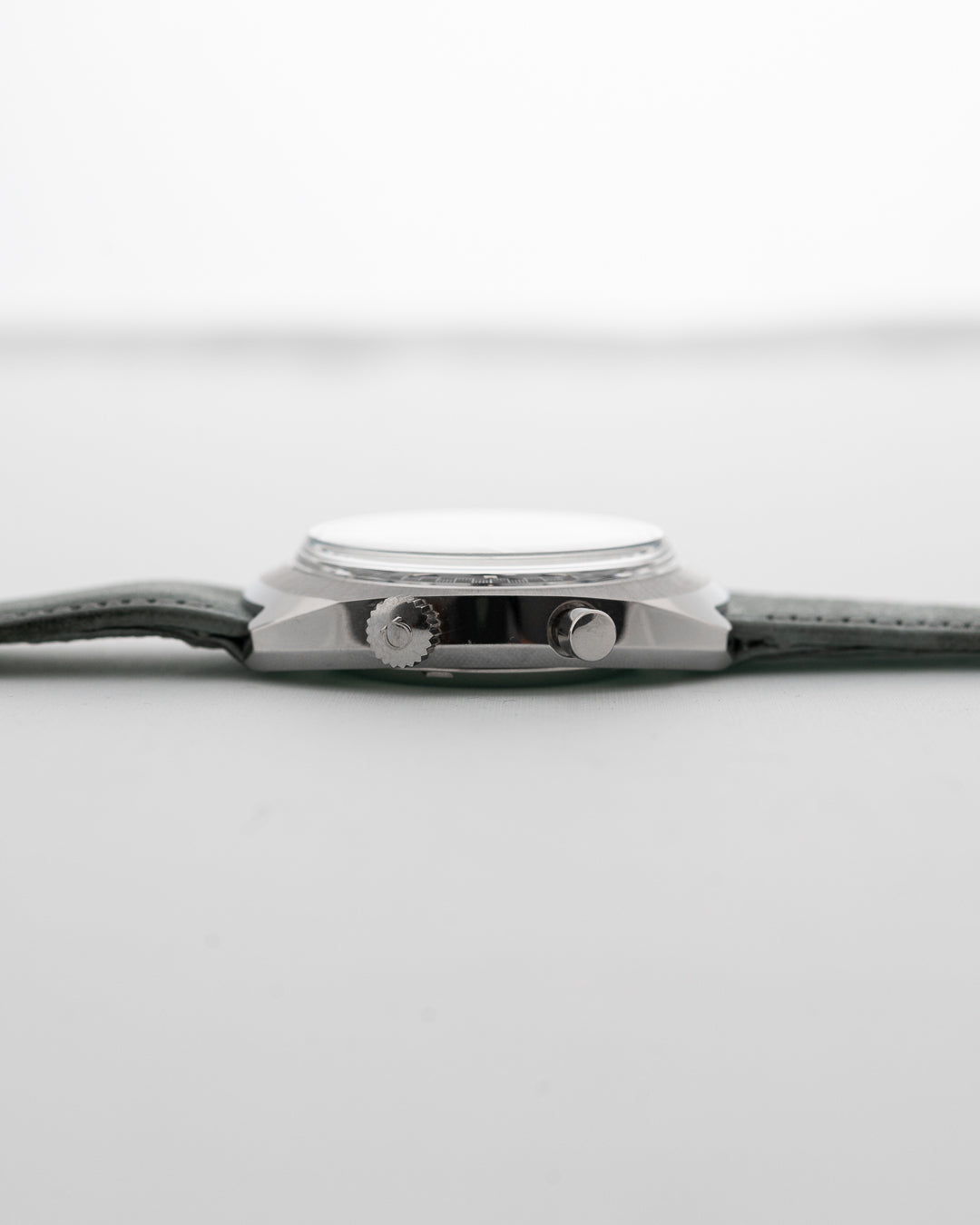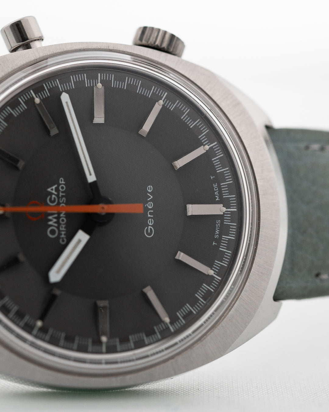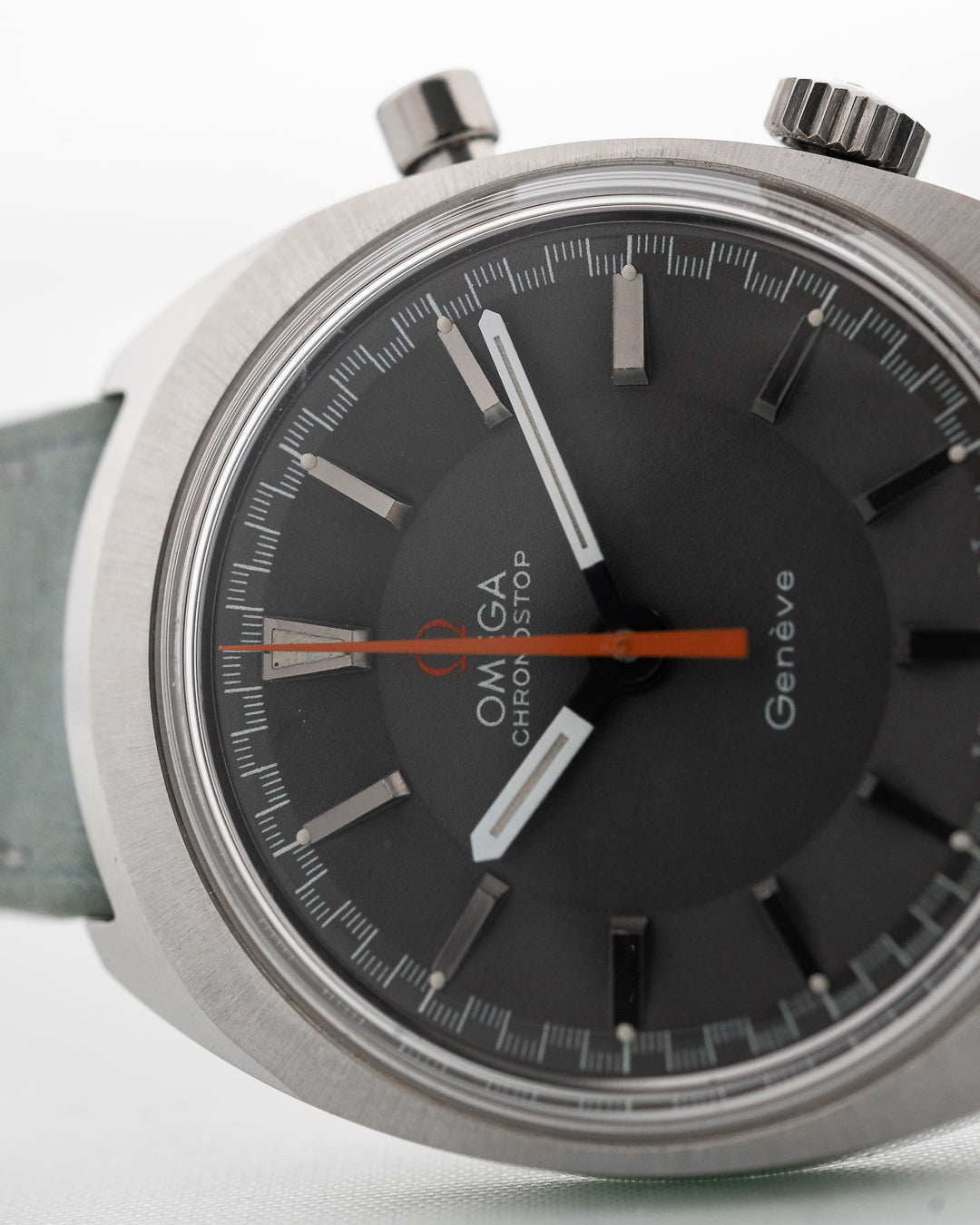 Le Chronostop a été conçu et commercialisé pour les conducteurs. Lorsque vous êtes au volant, ce modèle peut être porté sur ou sous le poignet. Un seul poussoir à deux heures permet de démarrer, d'arrêter et de remettre à zéro le chronographe sans avoir à manipuler deux poussoirs.