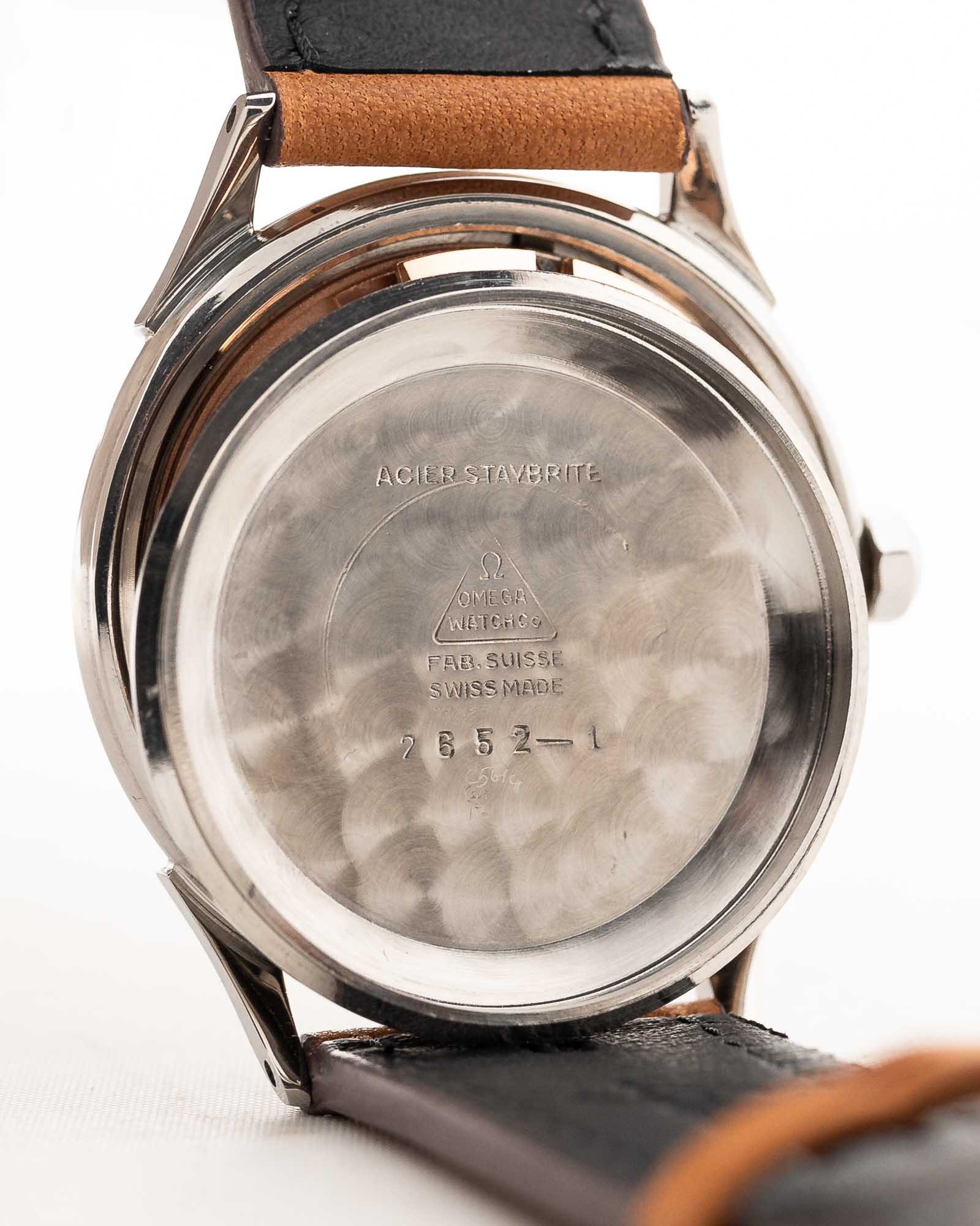 Le design est épuré, équilibré et indéniablement inspiré du milieu du siècle dernier, tandis que le fond vissé souligne son héritage chronométrique. À l'intérieur bat le fiable chronomètre automatique Omega Calibre 354, récemment révisé et fonctionnant parfaitement.