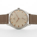 Les Omega vintage sont les rois de la montre habillée discrète et cette version en nid d'abeille ne déroge pas à la règle. Cette Omega de 1956 possède tout ce que vous attendez d'une montre habillée : un boîtier surdimensionné de 38 mm, un superbe cadran en nid d'abeille avec une seconde subsidiaire et de magnifiques aiguilles en forme de feuille en or rose. En outre, elle présente de très élégants index cercueils en or rose superposés et le très précis calibre Omega 266.