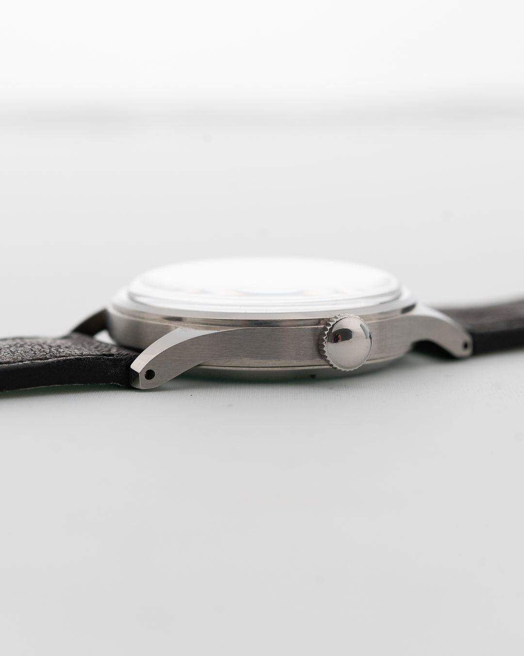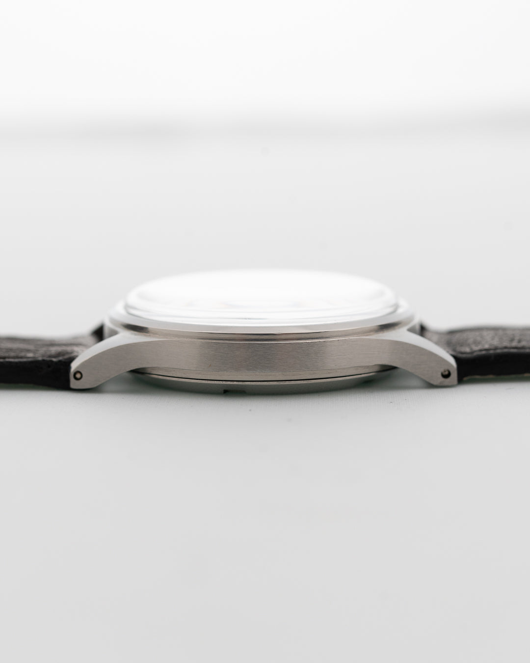 Les années 1940 ont été une période faste pour Omega, comme en témoigne cette montre habillée. Cet exemple n'est pas seulement beau, il est aussi substantiel. Doté d'un boîtier en acier de 35 mm, de cornes retournées et d'un superbe cadran noir mat, vous ne pouvez vraiment pas faire mieux. Le cadran a magnifiquement vieilli et comporte des chiffres arabes ainsi qu'un cadran des secondes subsidiaires, ce qui confère à cette montre une dimension vestimentaire supplémentaire.