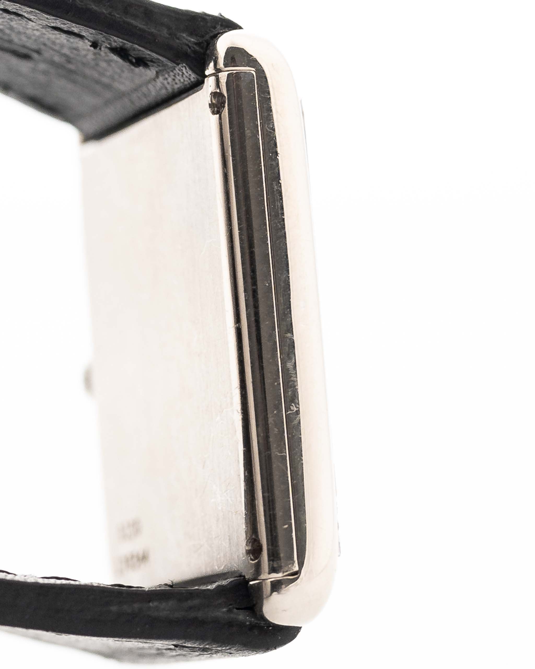 Montre Piaget Tank 9150 Lapis Lazuli 18k Roman des années 1970. 23mm avec boîtier en or blanc 18k, cadran en Lapislazuli, remontage manuel, calibre 9P, bracelet en cuir noir en très bon état.