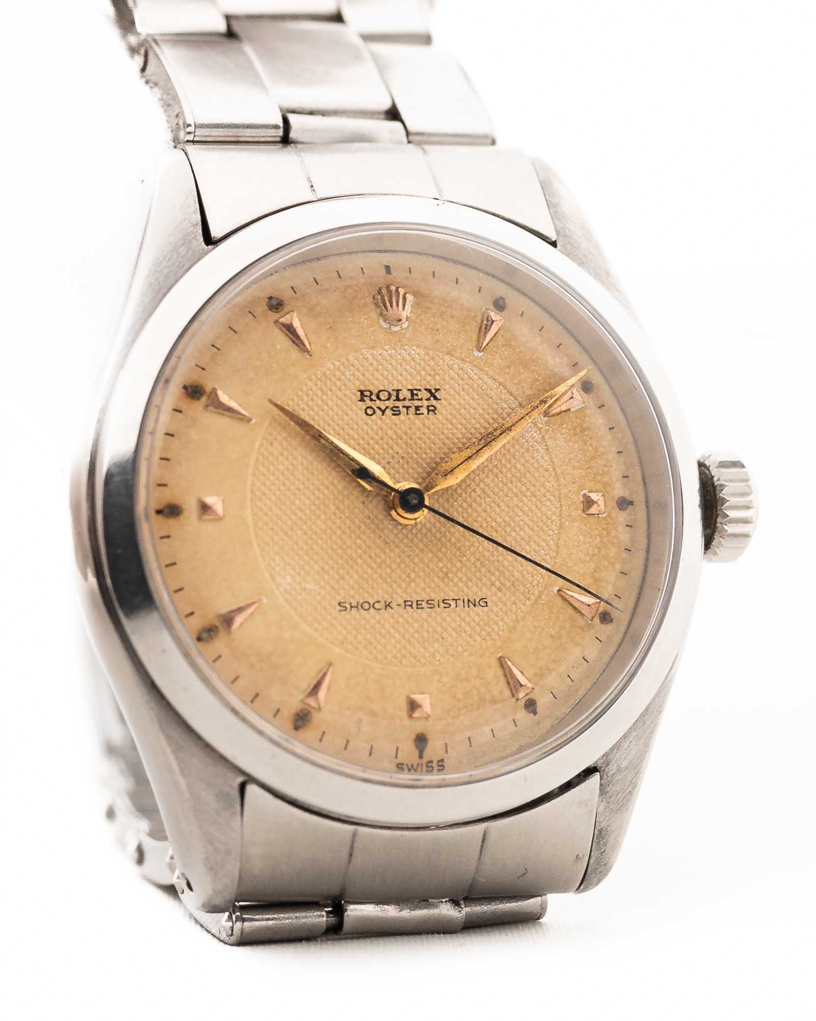 Les Rolex Oyster vintage qui indiquent uniquement l'heure ont un charme indéniable, et ce modèle est sans conteste l'un des plus beaux que nous ayons rencontrés ces dernières années.