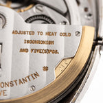 Gros plan sur le cadran d'une montre Vacheron Constantin avec les mentions "Automatic" et "Swiss".