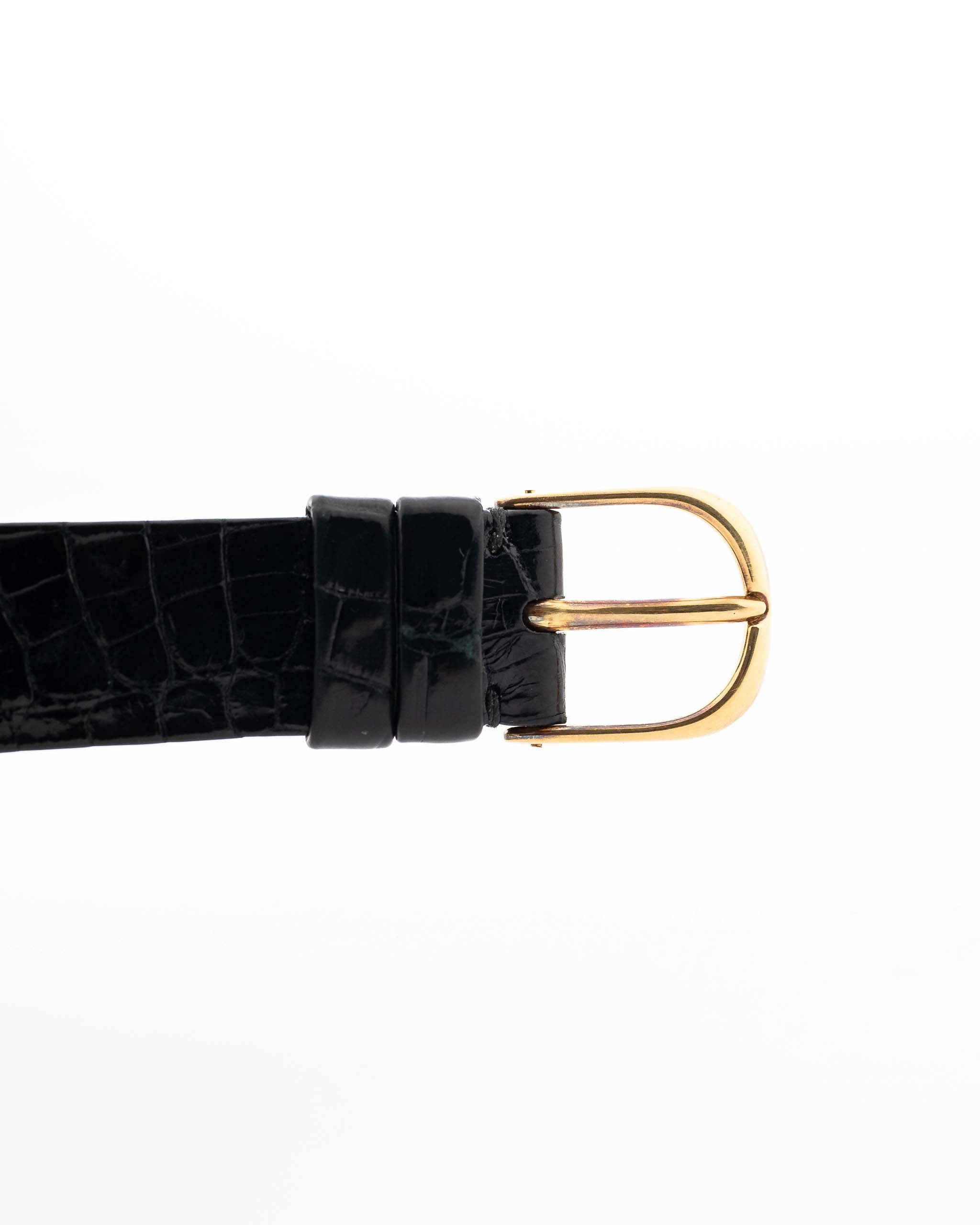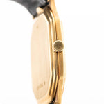 Le cadran crème présente des chiffres romains audacieux à 3, 6, 9 et 12, de fins détails et la signature classique d'Audemars Piguet à 12 heures. Le design géométrique du boîtier, associé au bracelet en cuir AP original et à la boucle en or 18 carats, en fait une pièce unique et de collection pour le connaisseur moderne.