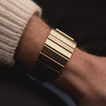 Création frappante et résolument audacieuse de l'époque du milieu du siècle d'Audemars Piguet, la référence 4274 se distingue par son iconique motif rayé "Pyjama" (souvent appelé "Zèbre"). Fabriqués en acier inoxydable, le boîtier et le bracelet assorti présentent une texture linéaire finement exécutée qui confère à la montre sa présence sculpturale et son caractère immédiatement reconnaissable.