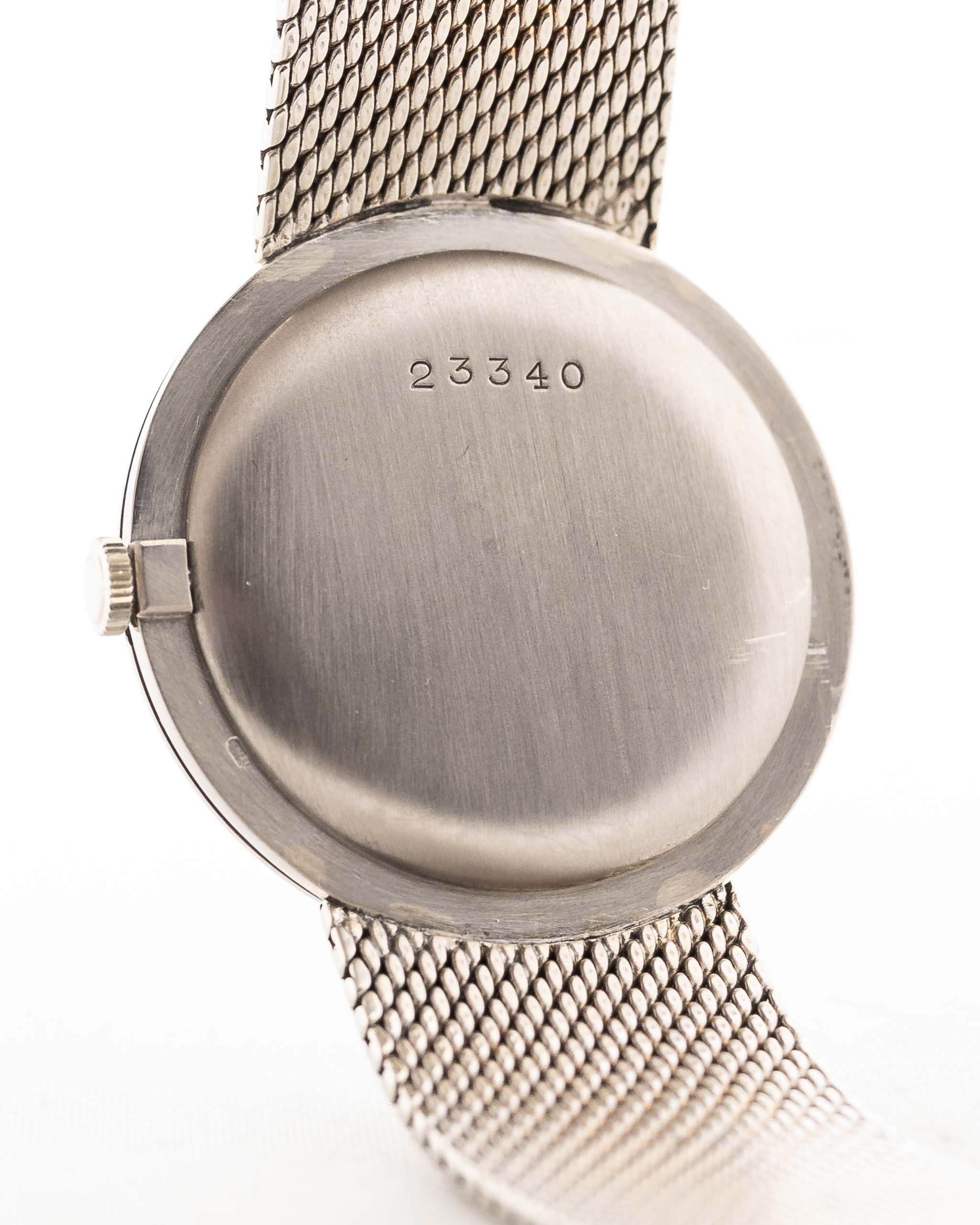 Exemple magnifiquement préservé du raffinement du milieu du siècle, cette Audemars Piguet Ref. 5139BC incarne l'élégance et la sobriété qui définissaient les montres habillées de la marque dans les années 1960. Fabriqué en or blanc 18 carats, le boîtier ultra-mince a une présence nette et minimaliste au poignet, permettant au cadran exquis d'occuper le devant de la scène.