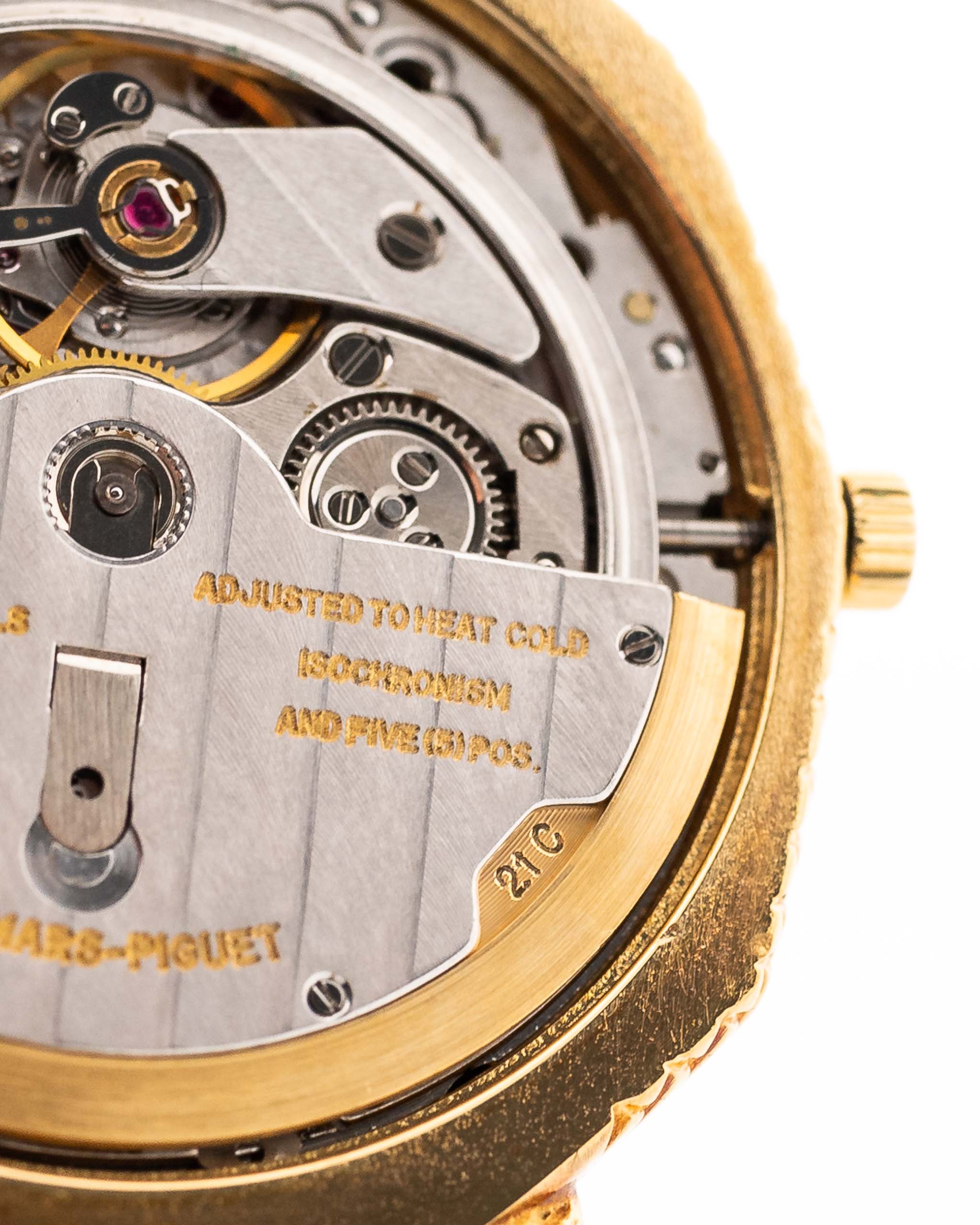 À l'intérieur, le calibre 2121/1 ultrafin - développé en collaboration avec Jaeger-LeCoultre - offre à la fois un prestige mécanique et un confort élancé au poignet. Il s'agit du même calibre réputé que celui utilisé dans les premiers modèles Royal Oak.