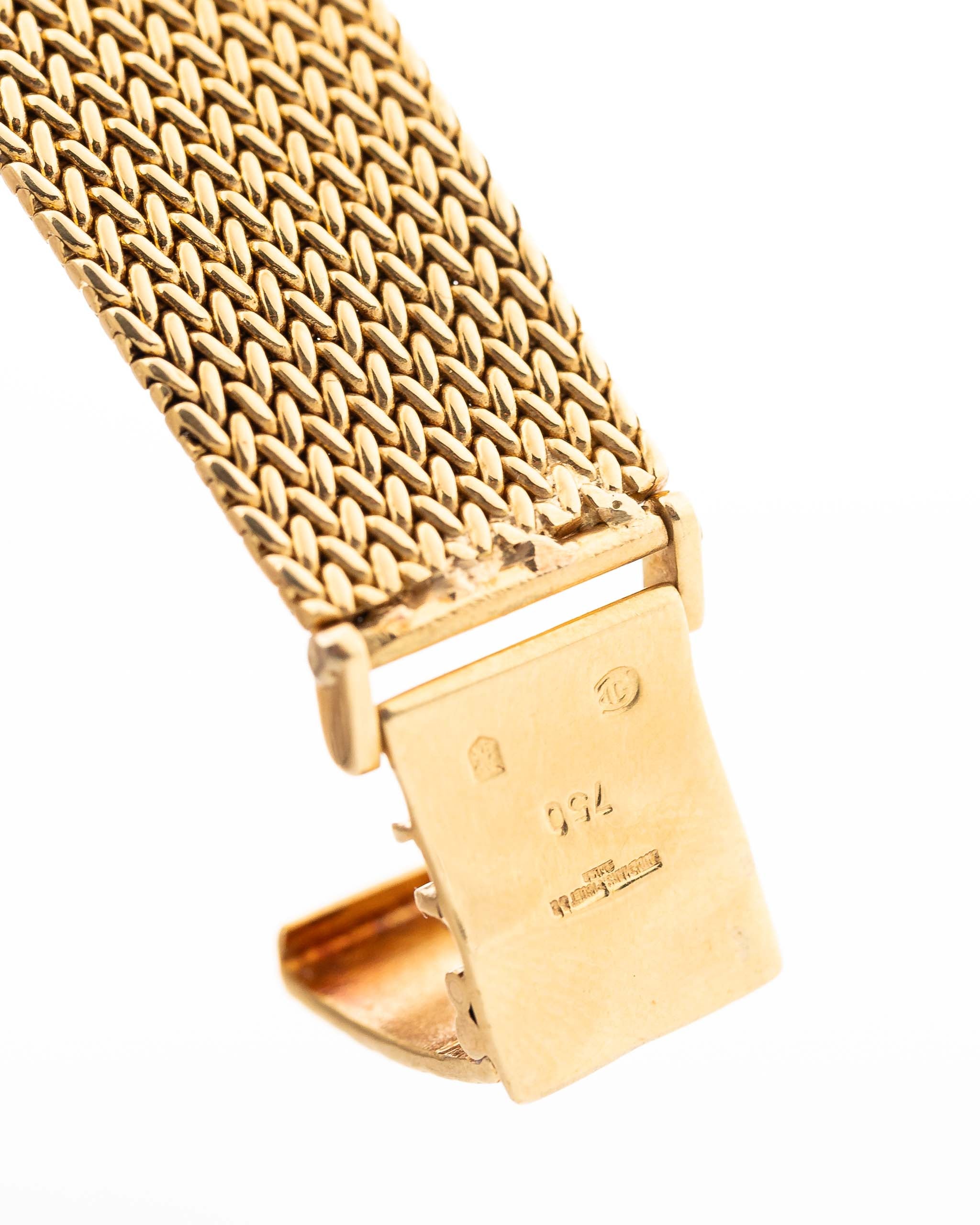 Un bracelet tressé intégré en or jaune 18k complète la pièce, fluide et architecturé, faisant de cette montre autant un bijou qu'un instrument de précision.