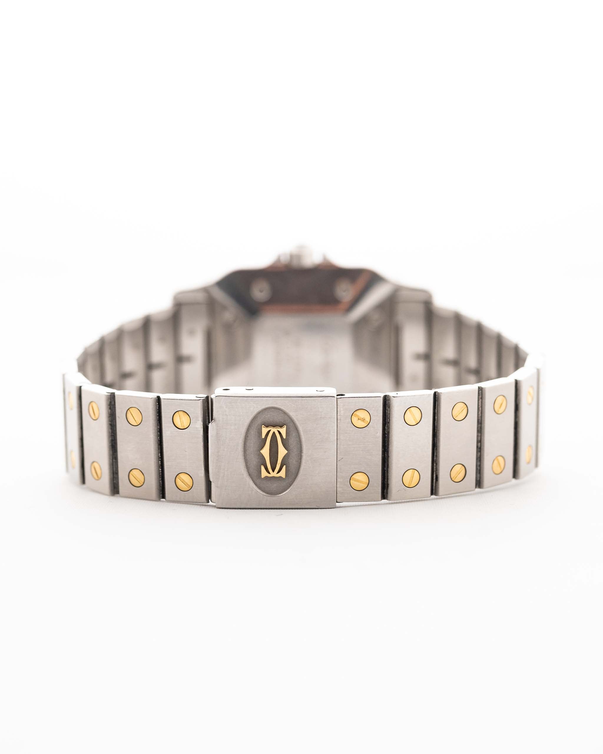 Crafted in two-tone steel and 18k yellow gold, the 29mm case is paired with the signature Cartier bracelet featuring golden screws — a design rooted in the original 1904 Santos, reimagined in the bold language of the 80s.