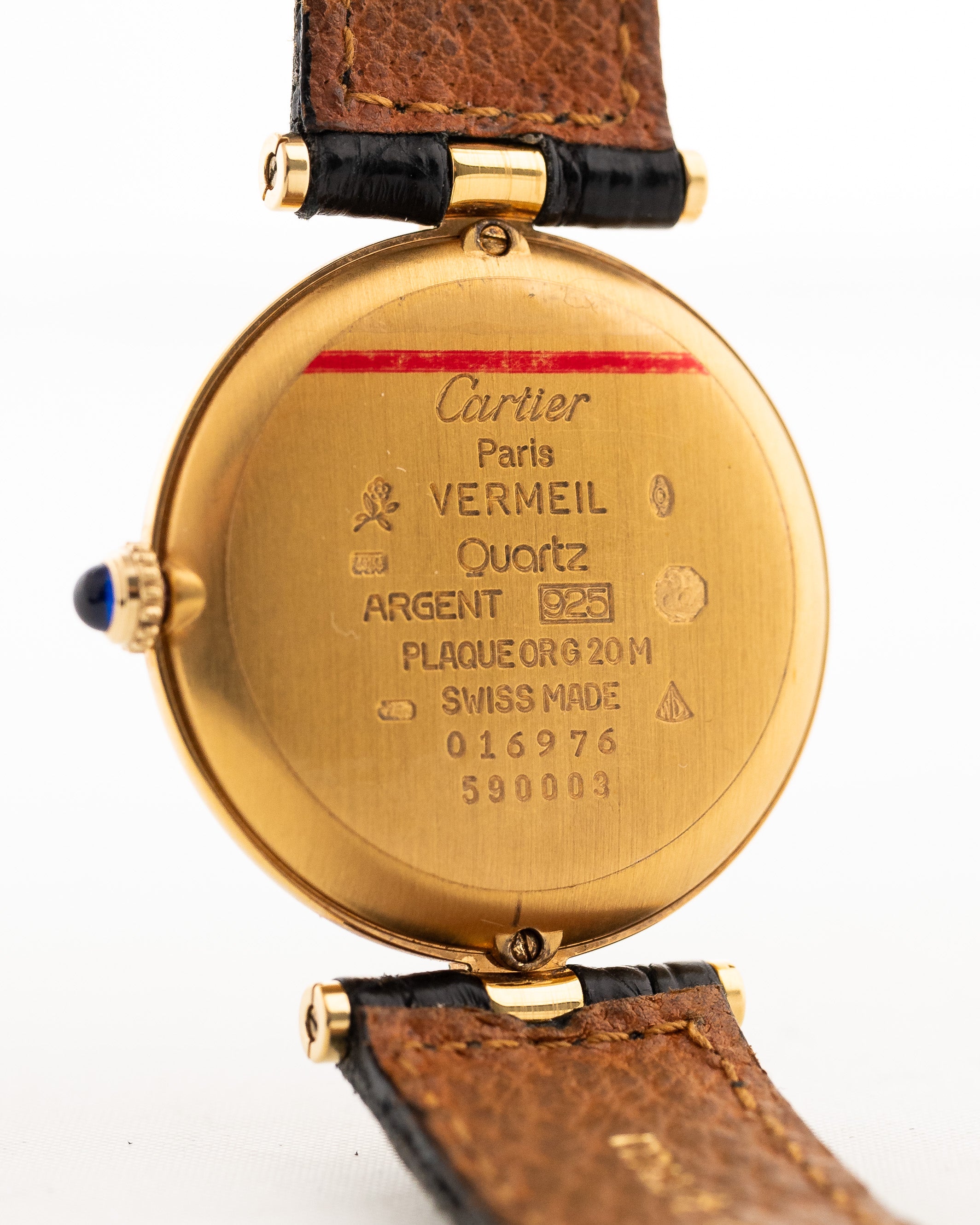 Il comprend le bracelet en cuir d'origine de Cartier et la boucle Cartier (plaquée or).