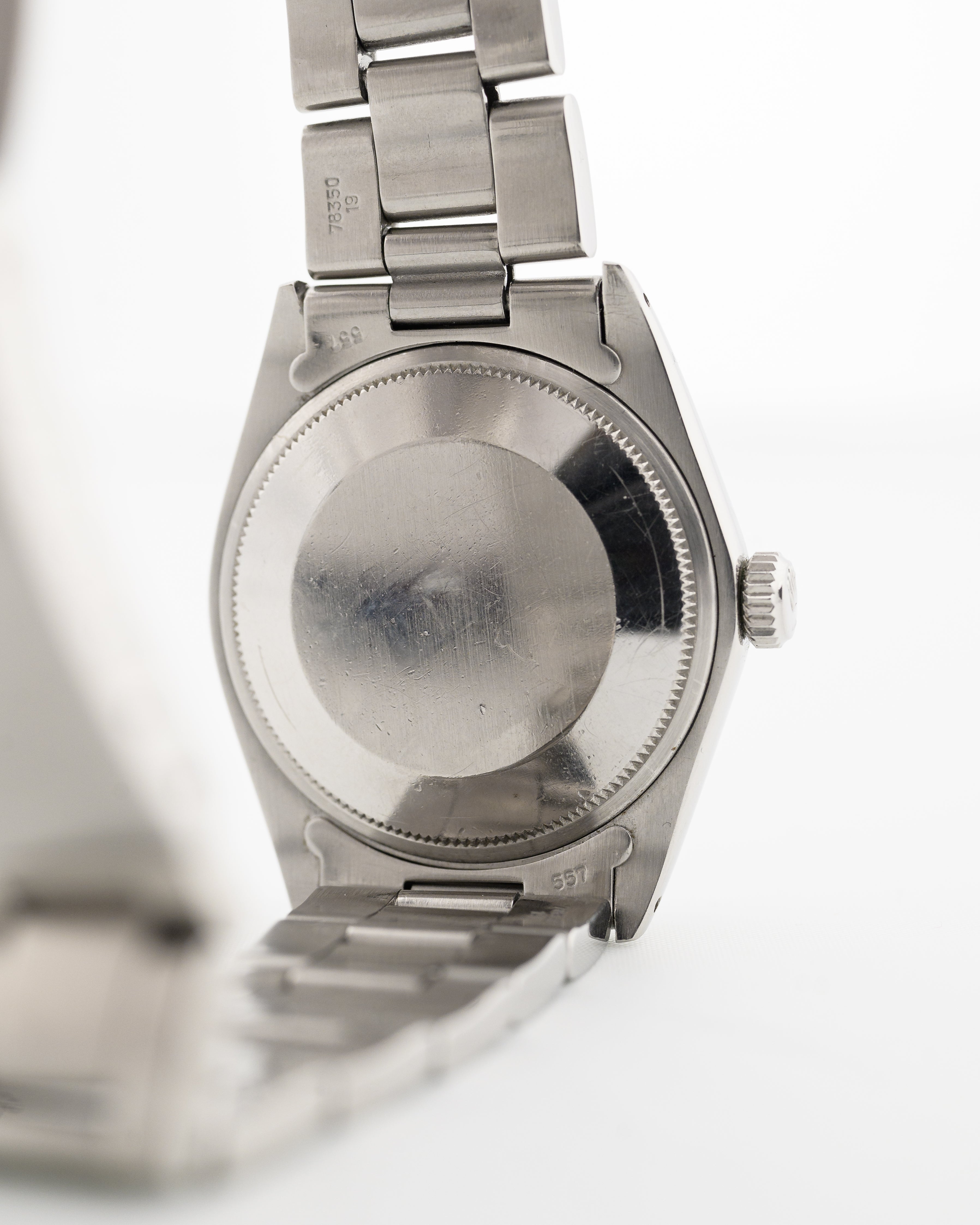 • le bracelet Rolex Oyster en acier inoxydable (A), légèrement extensible, convient jusqu'à 19,5 cm