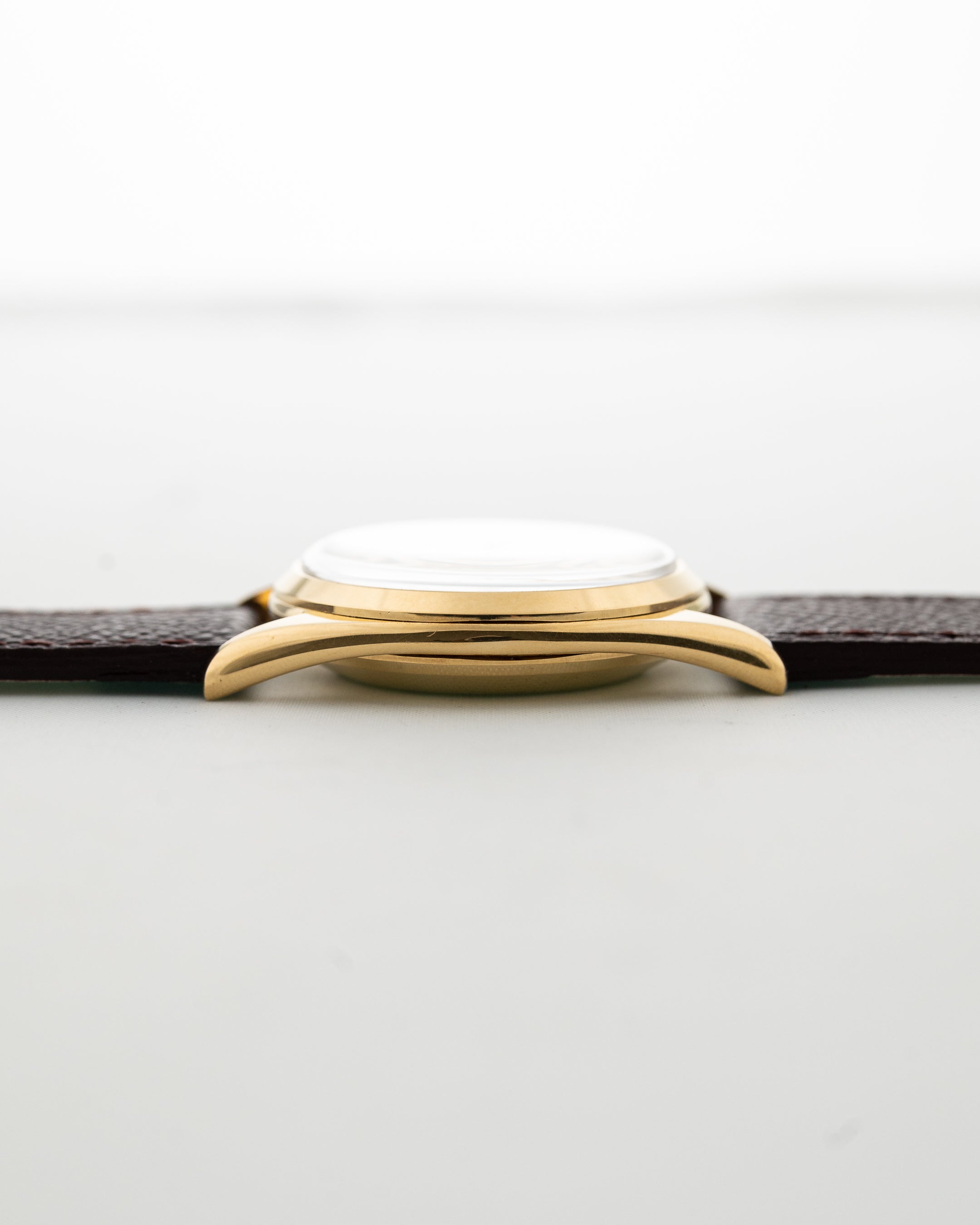 IWC a produit très tôt une grande variété de montres-bracelets, allant des montres habillées aux montres d'aviation. Cet exemple appelé "Bombay", en or jaune 18 carats, avec un magnifique cadran propre, restera une constante dans les collections de tout un chacun.