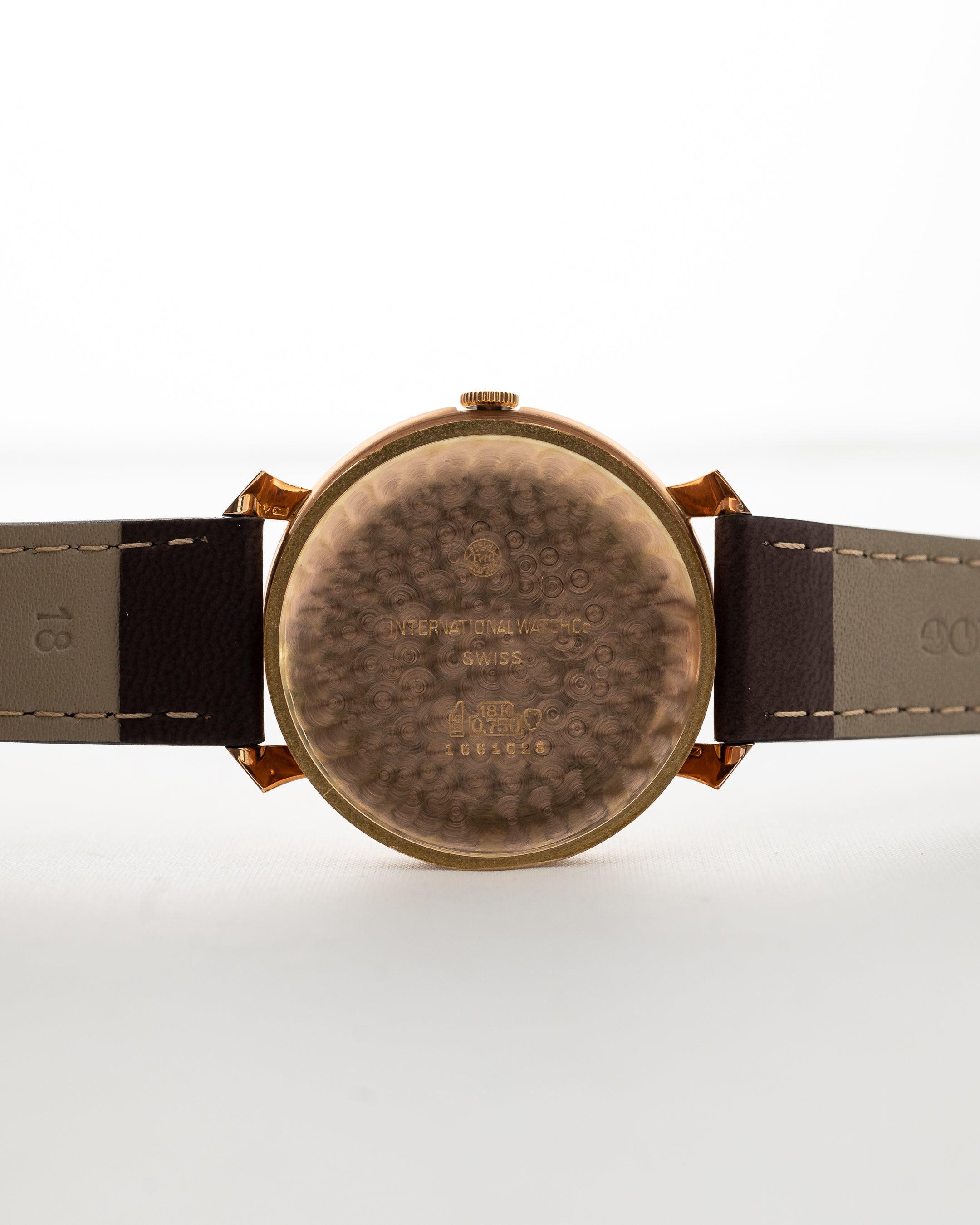 IWC a produit une très grande variété de montres-bracelets depuis le début, allant des montres habillées aux montres d'aviation. Cet exemple, en or rose 18 carats avec des cornes en aileron de requin, resterait une constante dans les collections, d'autant plus qu'il se trouve dans un état proche du NOS.