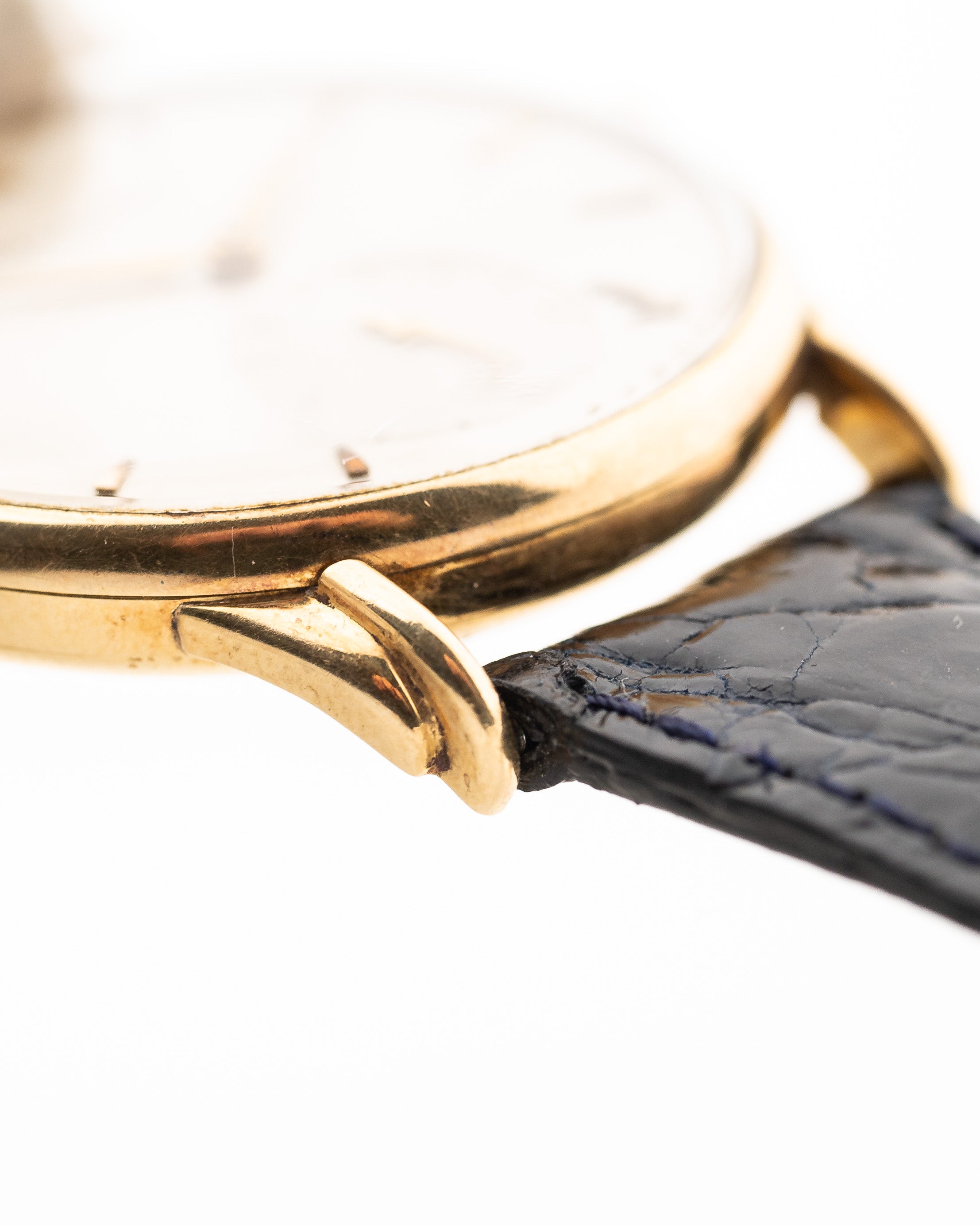 IWC a produit une très grande variété de montres-bracelets depuis le début, allant des montres habillées aux montres d'aviation. Notre exemplaire de 1946, avec son boîtier en or jaune 18 carats, ses cornes étagées et son magnifique cadran des secondes de couleur argentée, restera une constante dans les collections, d'autant plus qu'il se présente dans cet état exceptionnel.